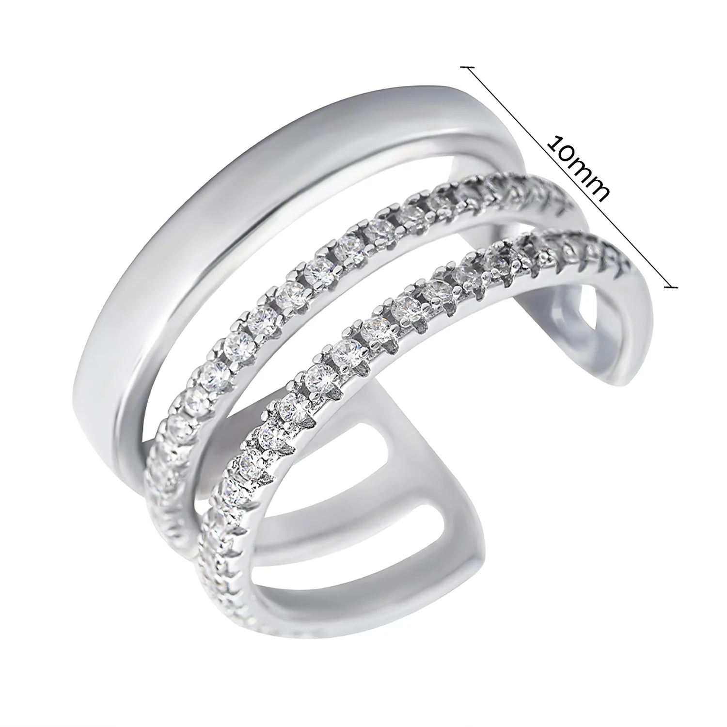Кольцо тройное незамкнутое серебряное с фианитами - 1524308