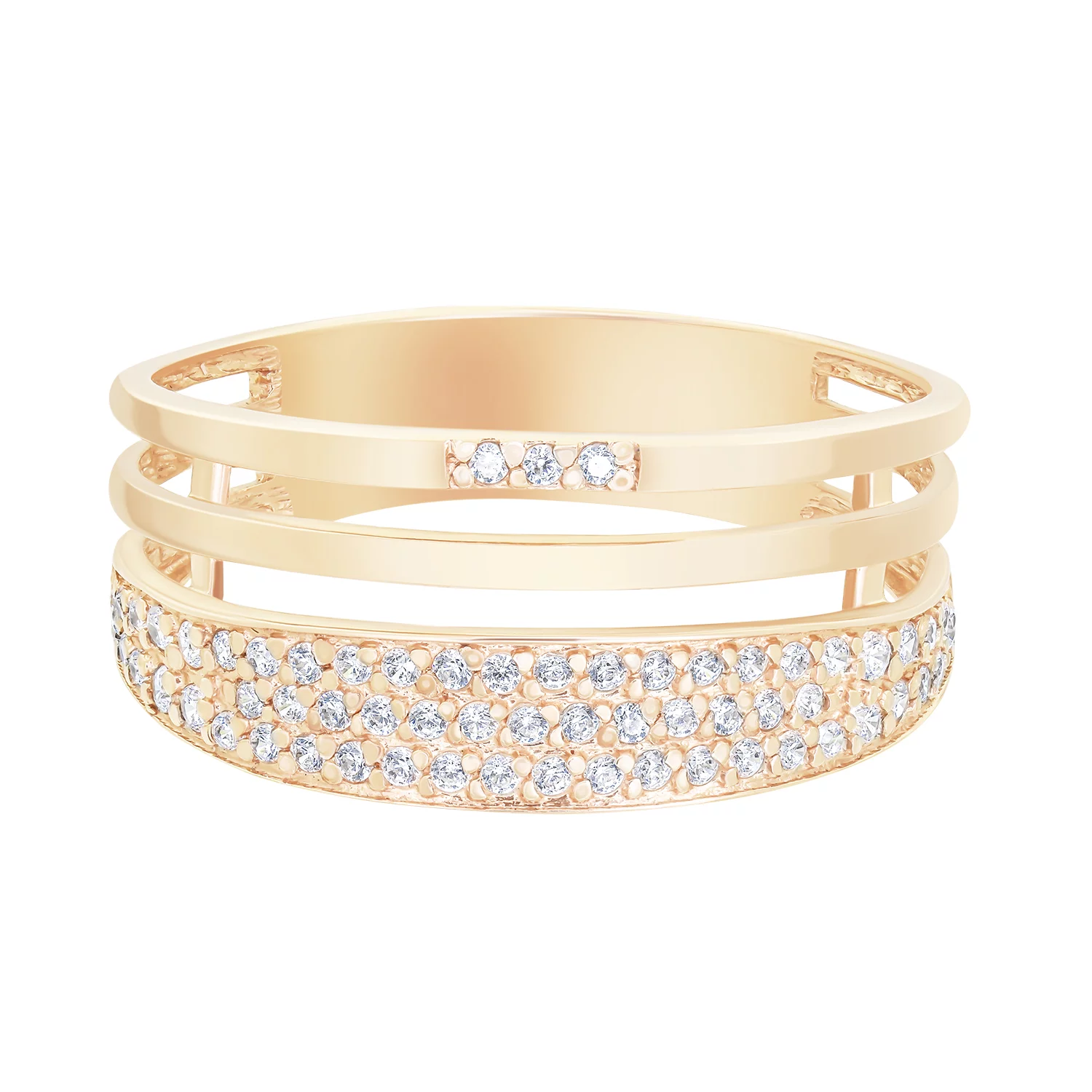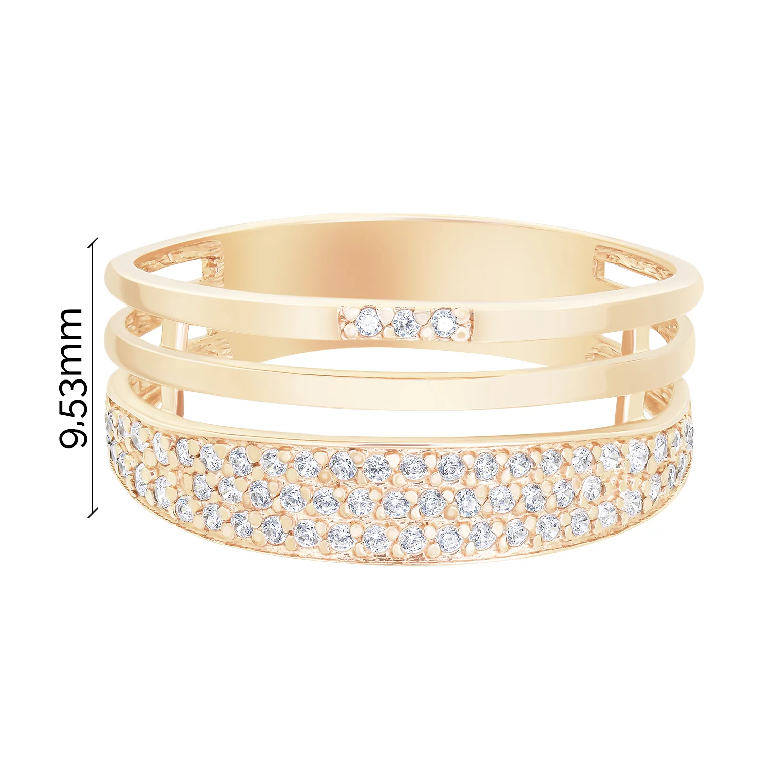 Кольцо тройное в красном золоте с фианитами - 1736136