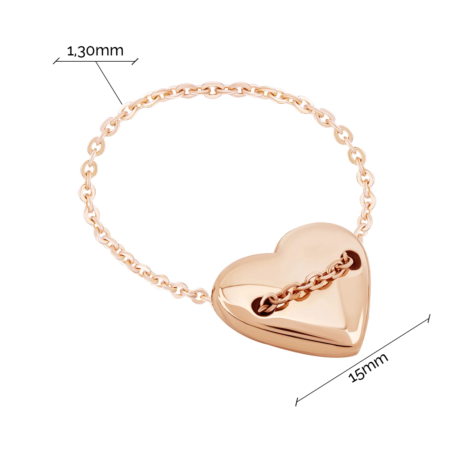 Кольцо-цепочка с подвесом "Сердце" в красном золоте - 2008048