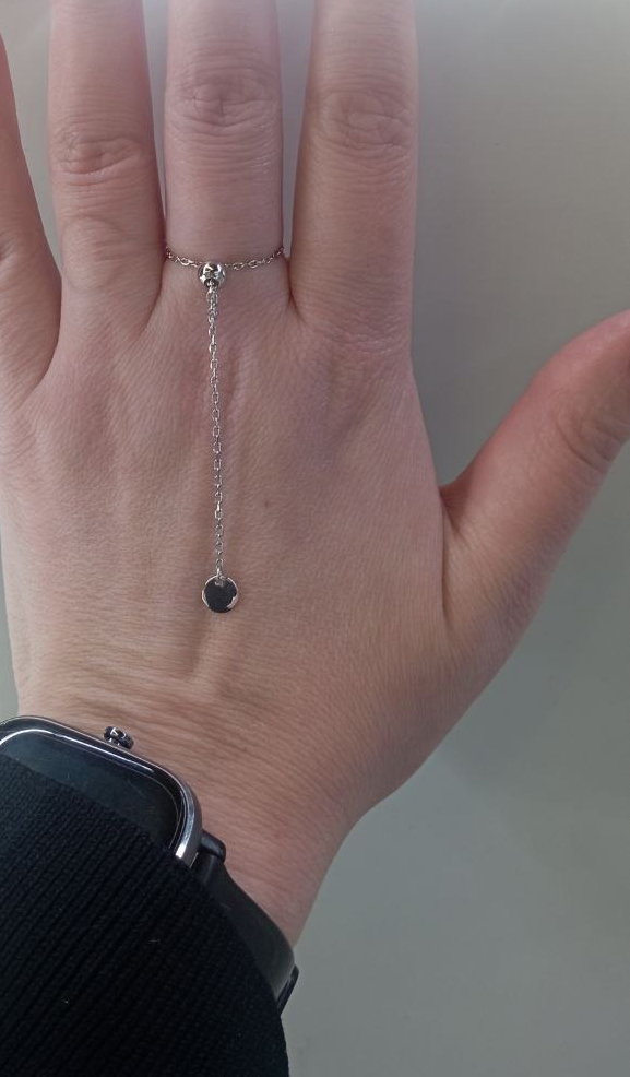 Кольцо-цепочка "Шарик и монета" с подвесом из серебра - 2126909