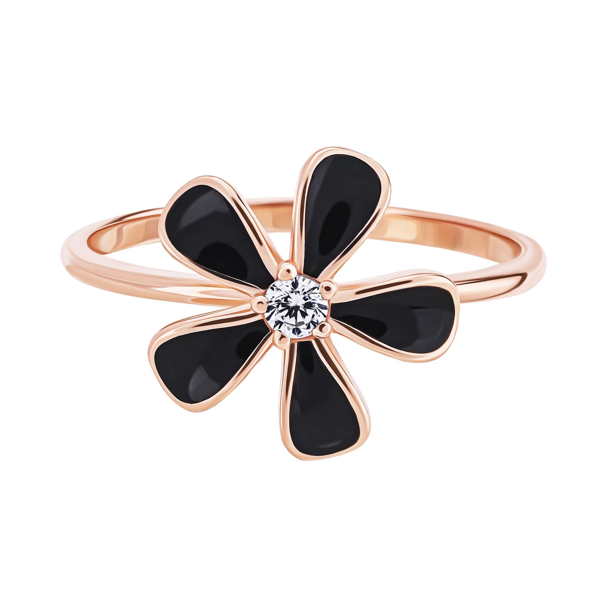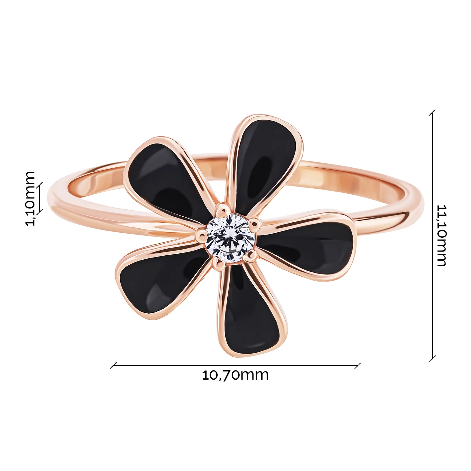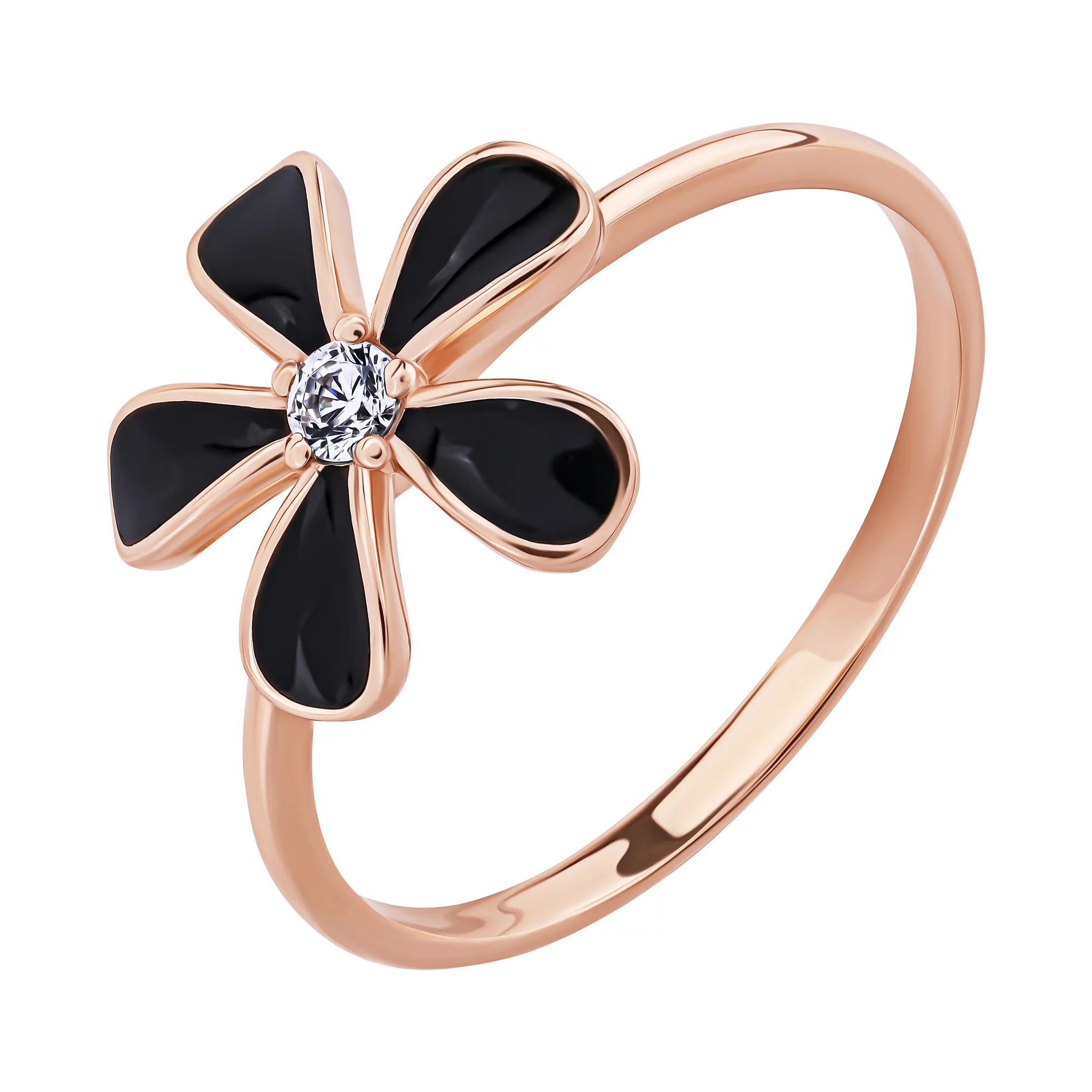 Стильное кольцо в форме круга из красного золота с эмалью и фианитом - 1923460