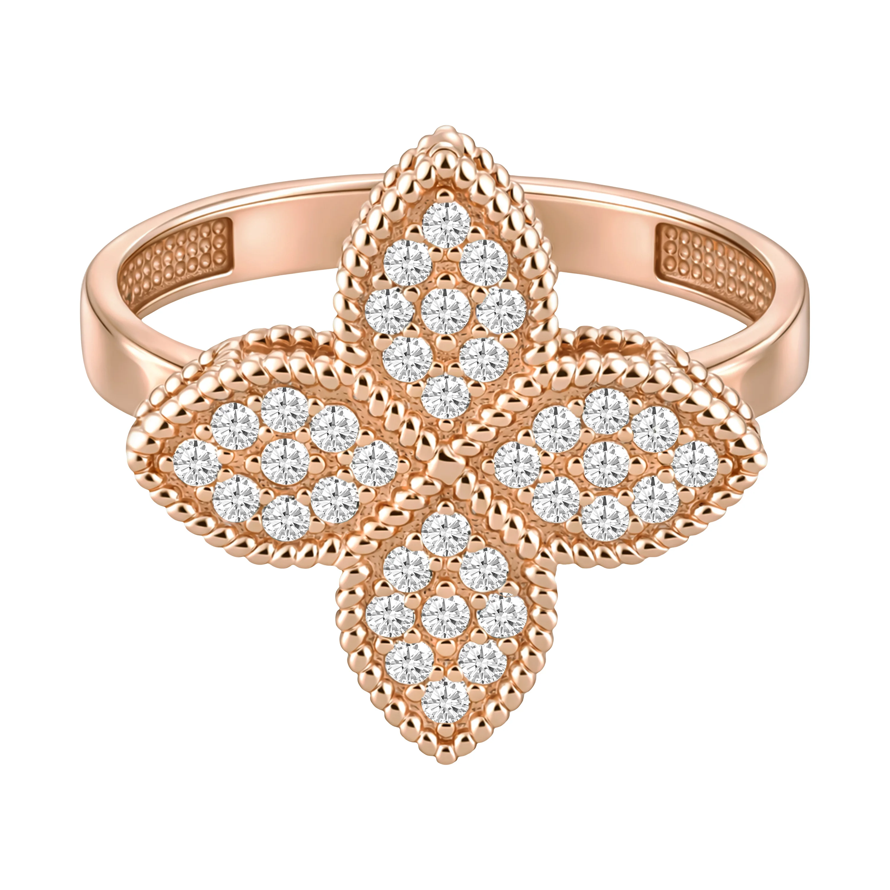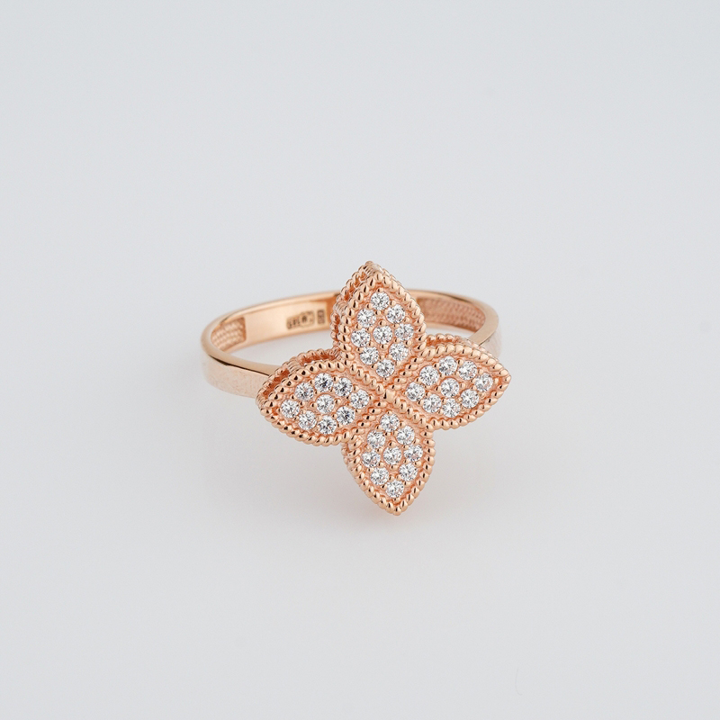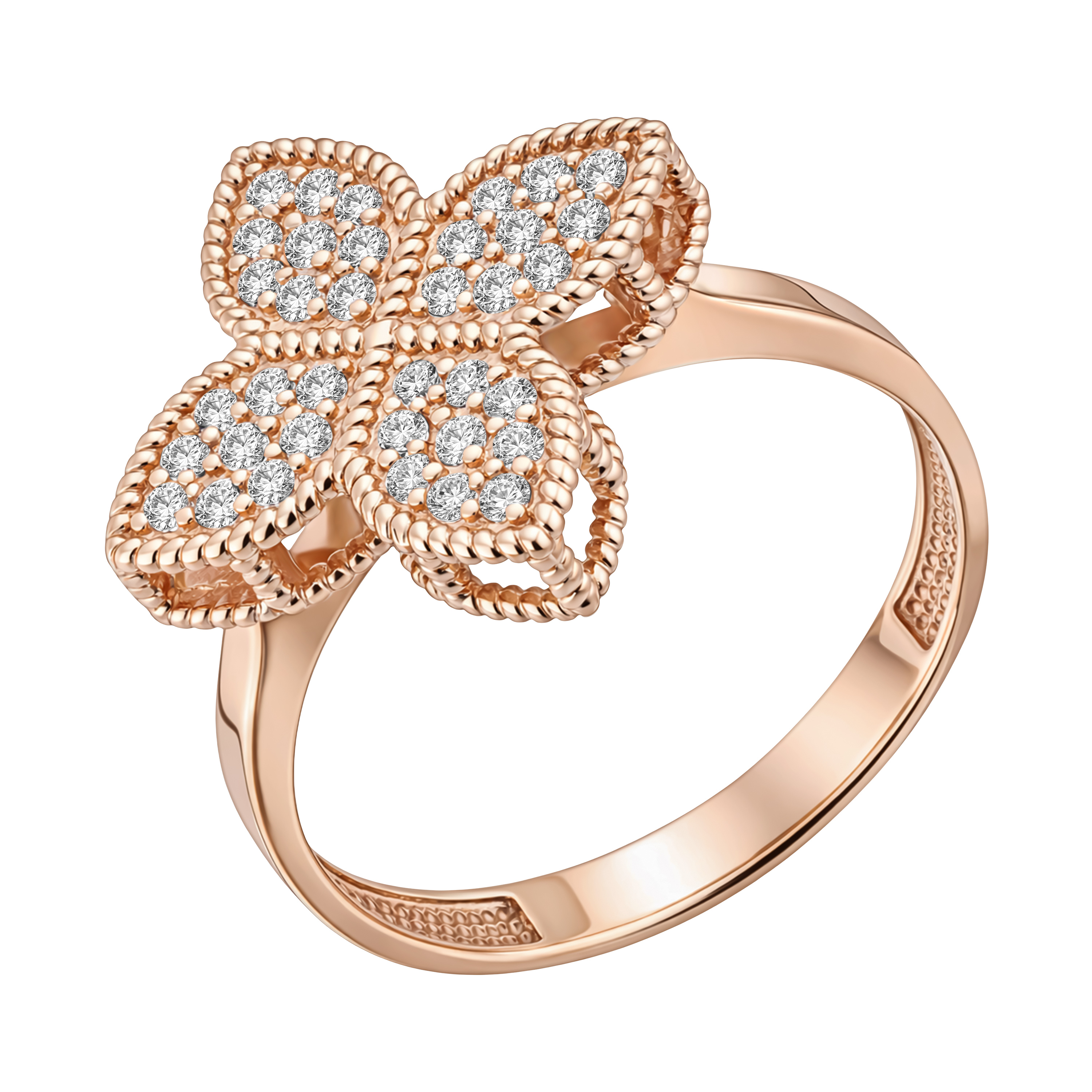 Кольцо "Цветок" из красного золота с фианитами - 2218531