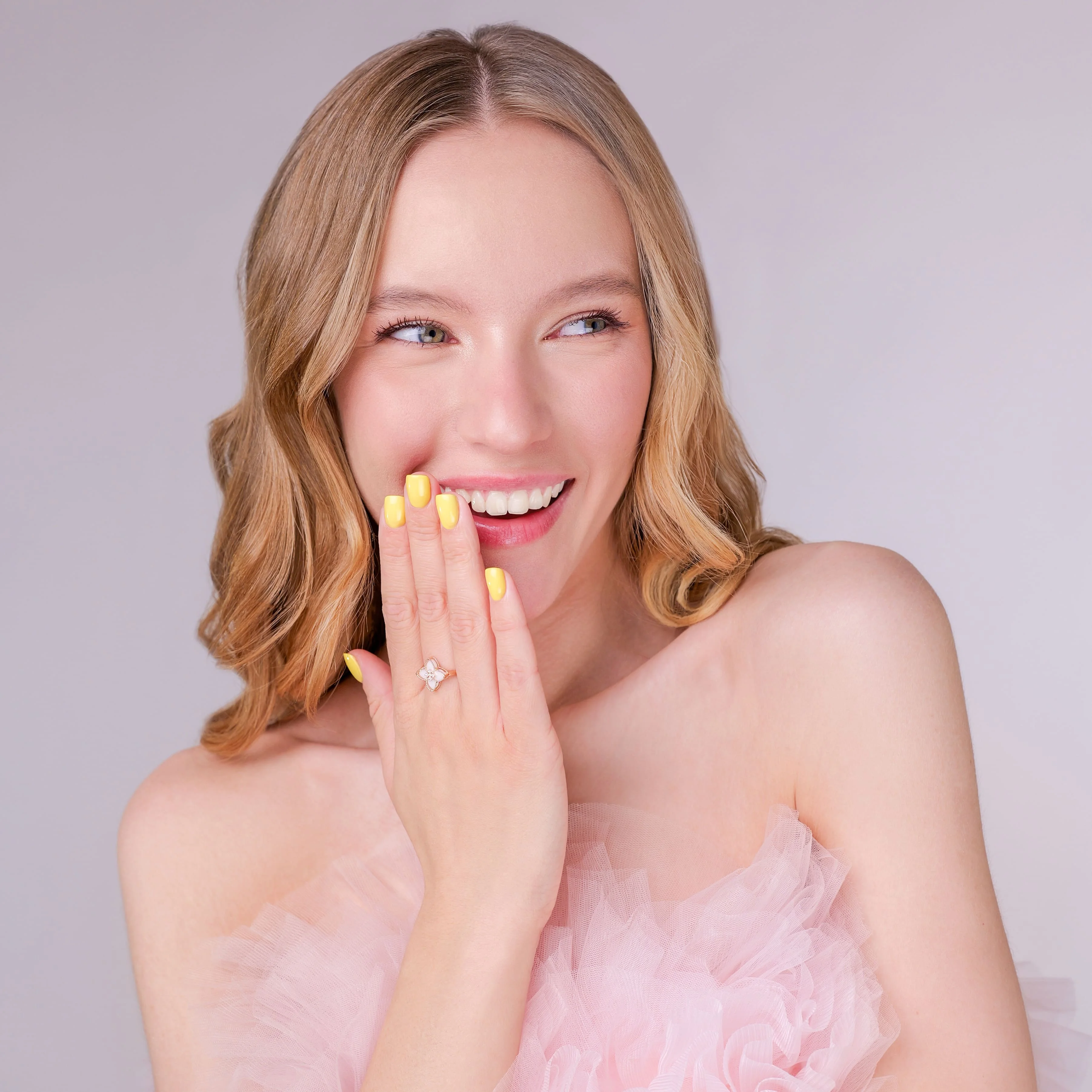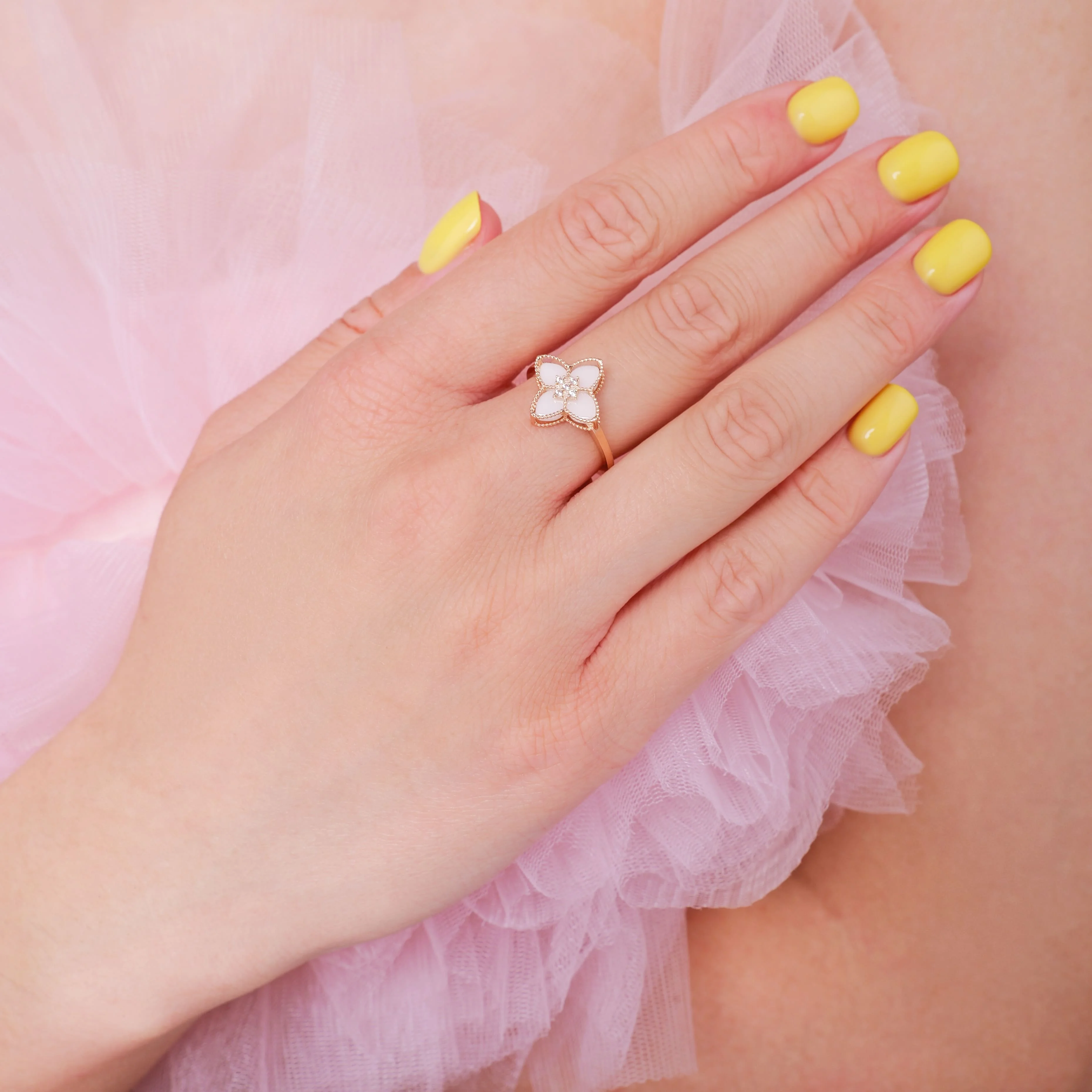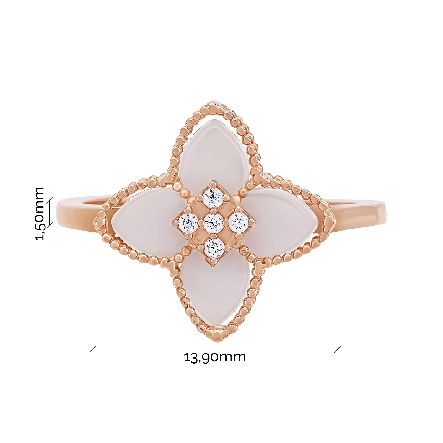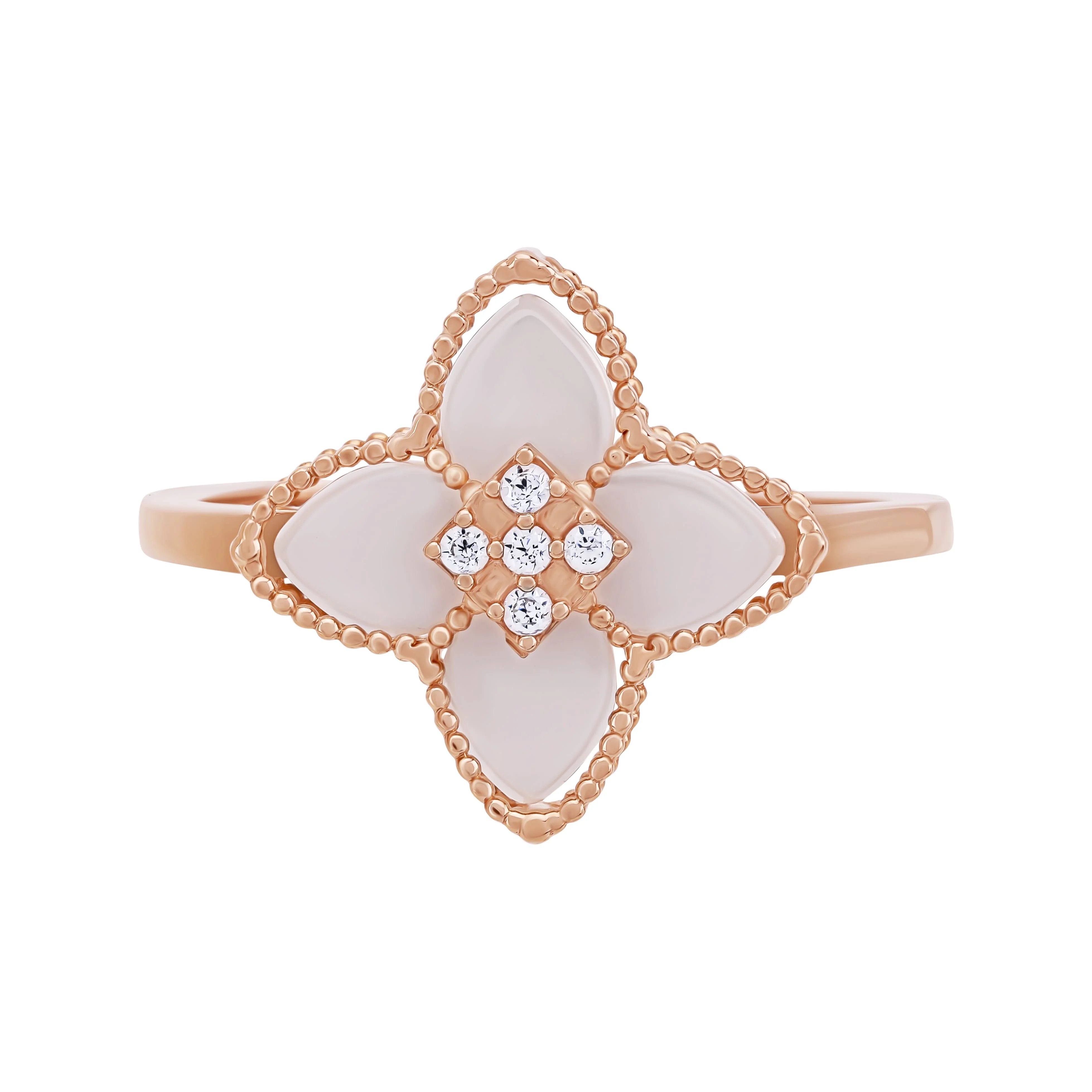 Кольцо "Цветок" с агатом и фианитами в красном золоте - 1992797
