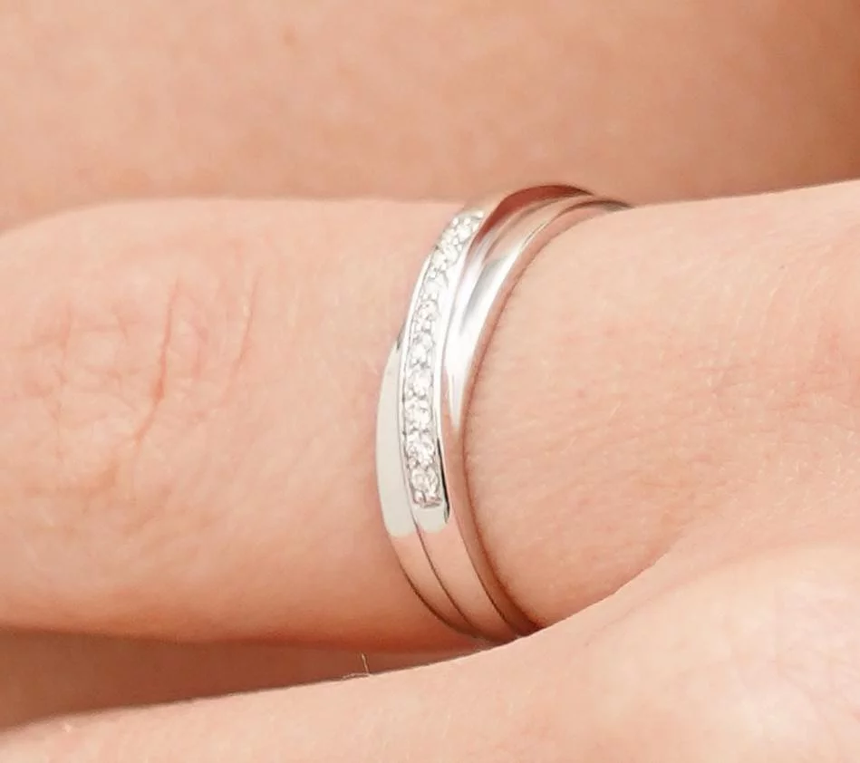 Обручальное кольцо в белом золоте с бриллиантами американка - 1731157