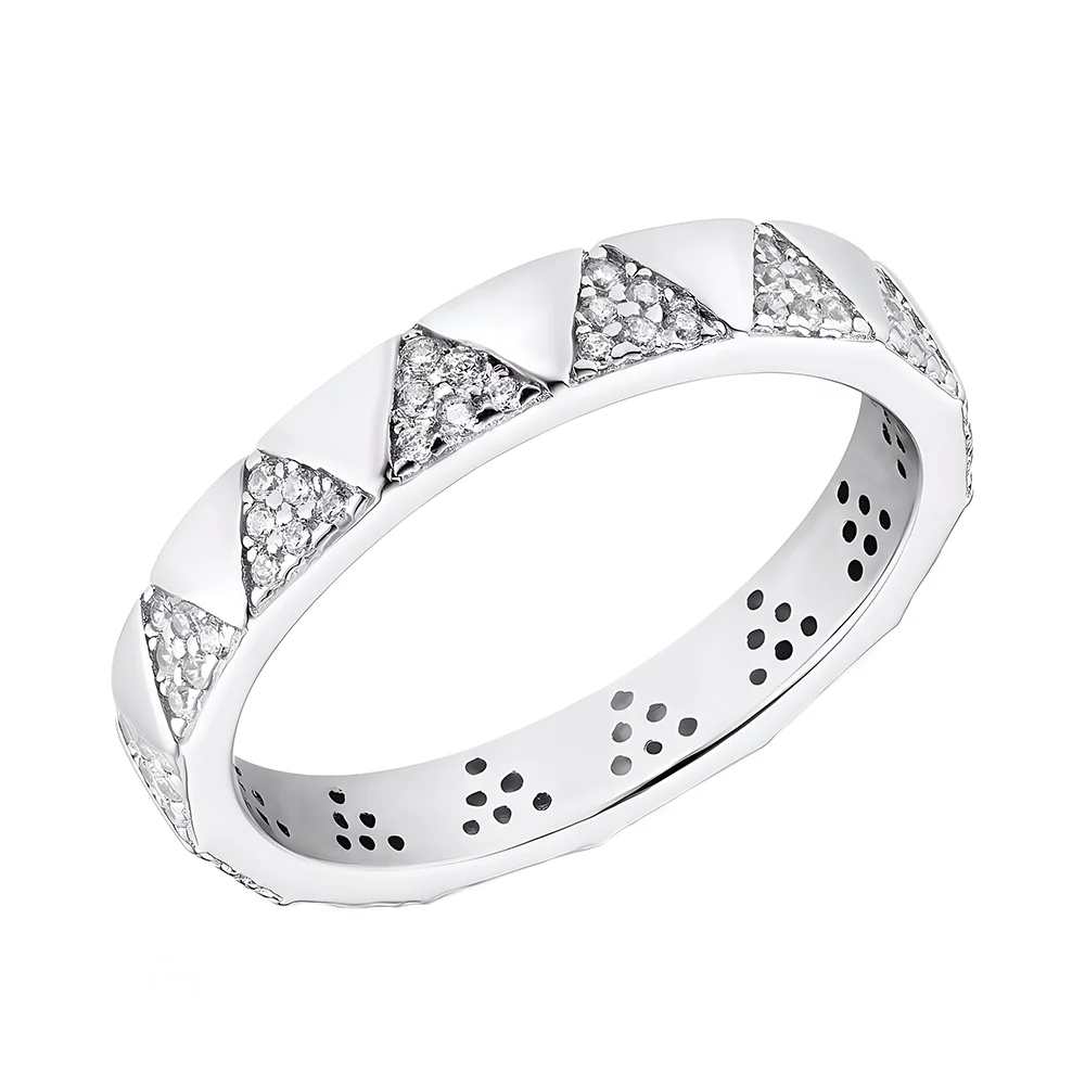 Кольцо в форме треугольников из серебра с фианитами - 1558773