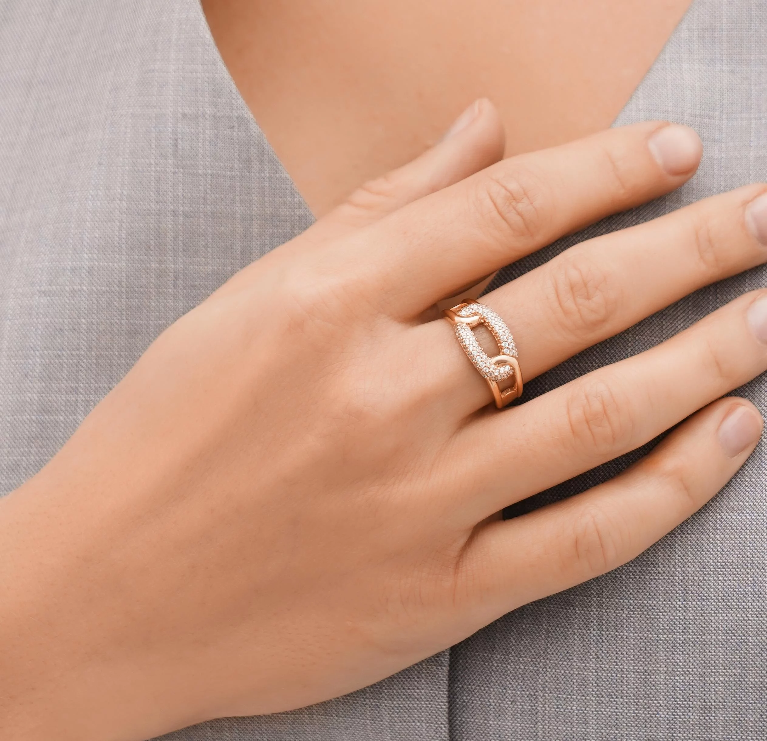 Кольцо в форме звена из красного золота с фианитами - 1611743