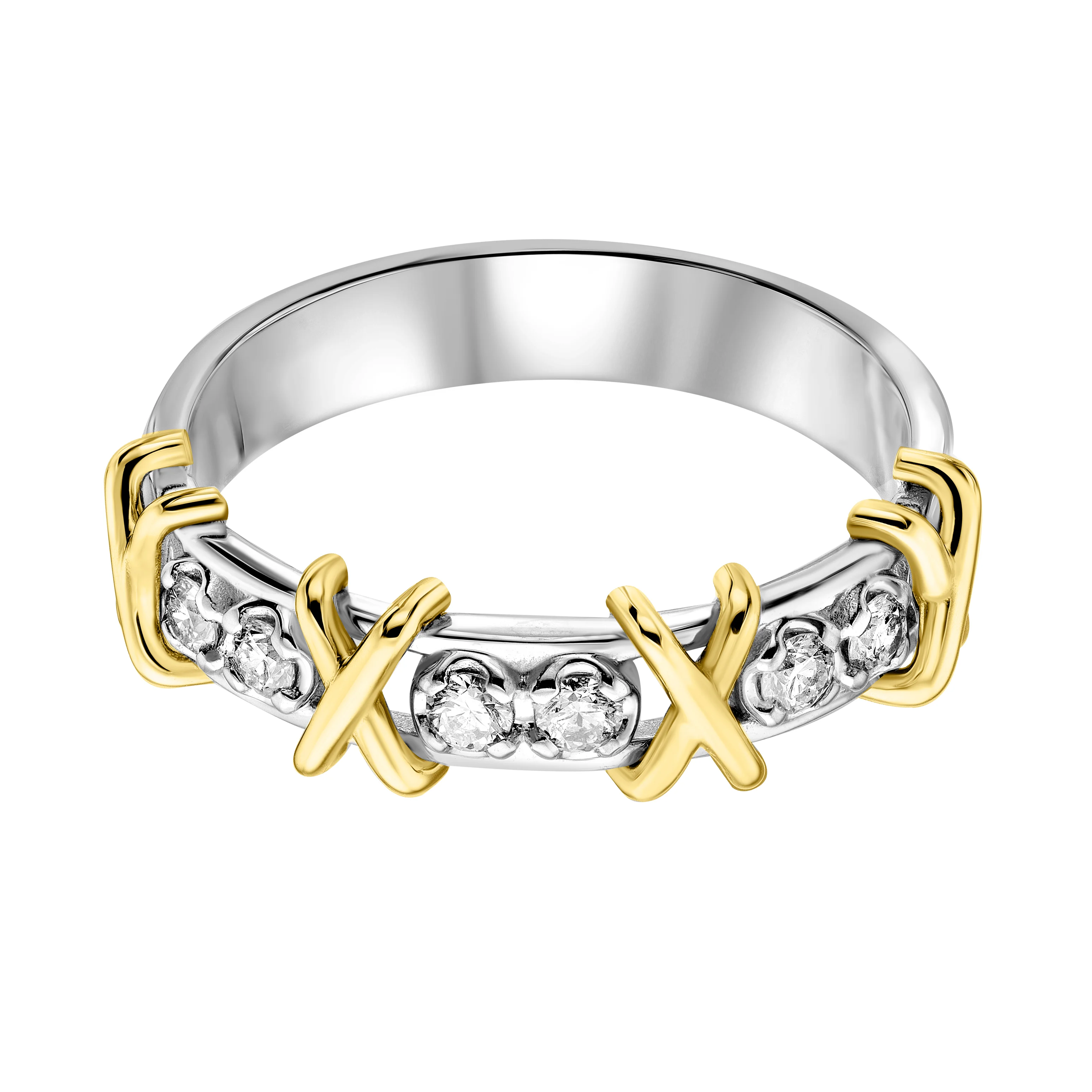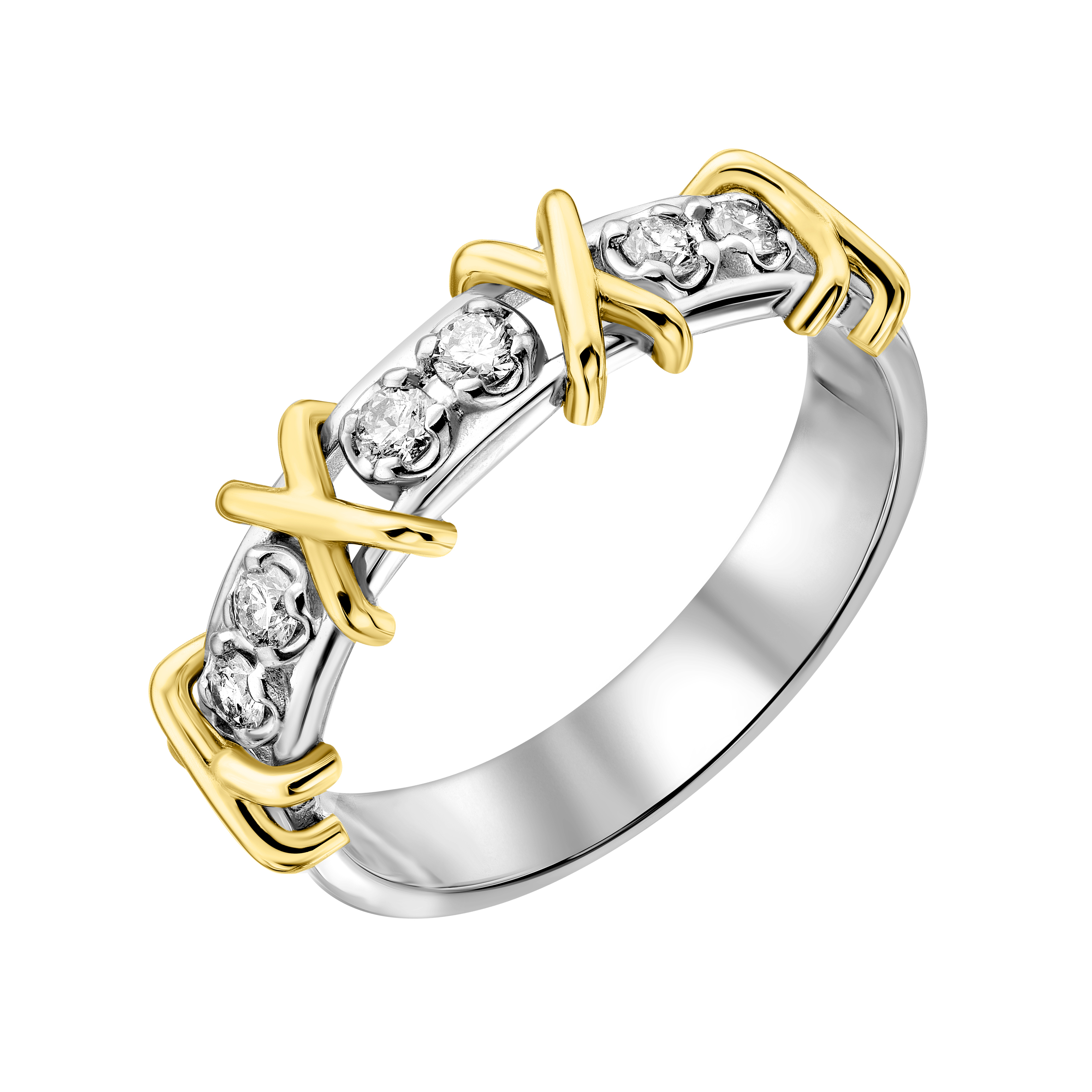 Кольцо в комбинированном золоте с дорожкой бриллиантов - 2182912