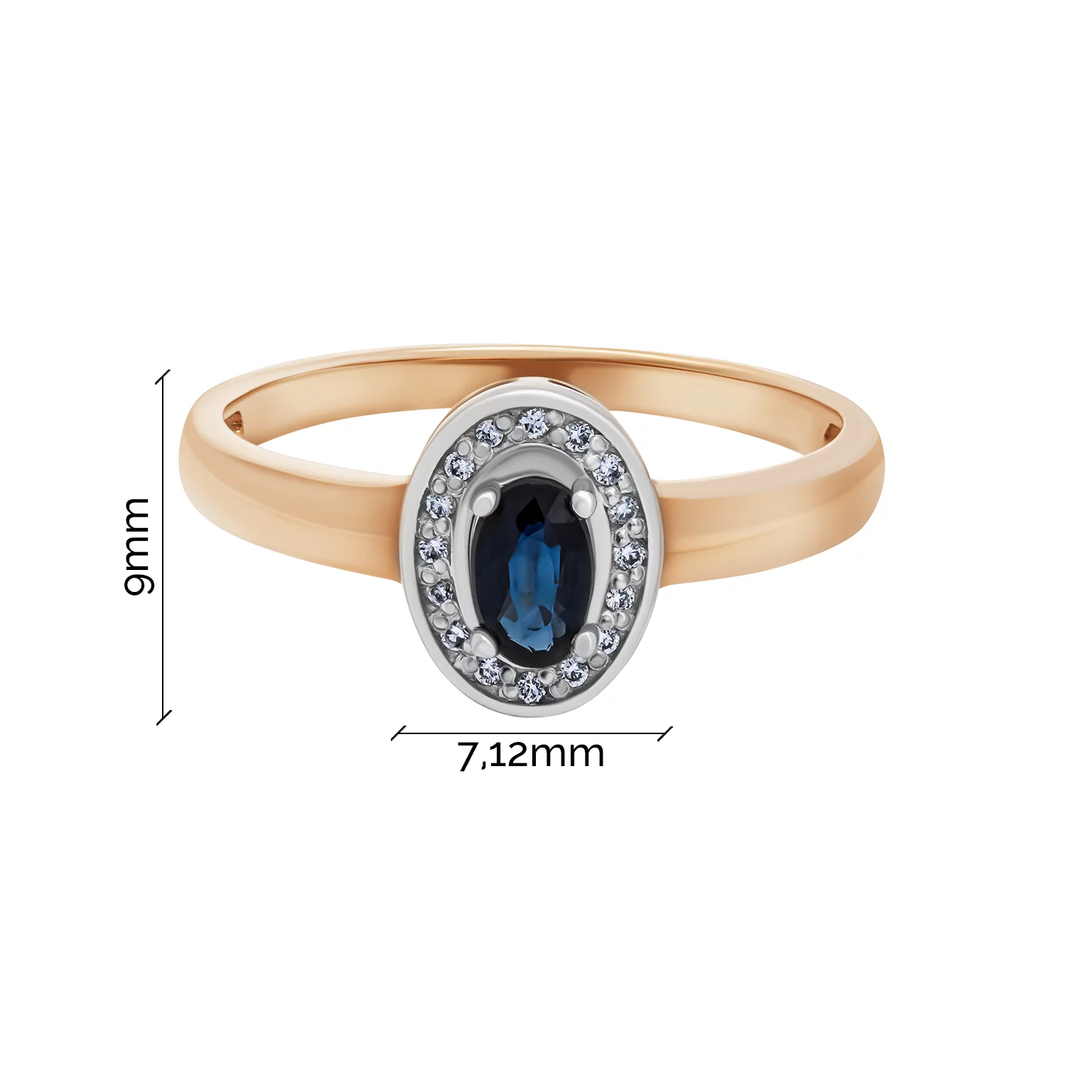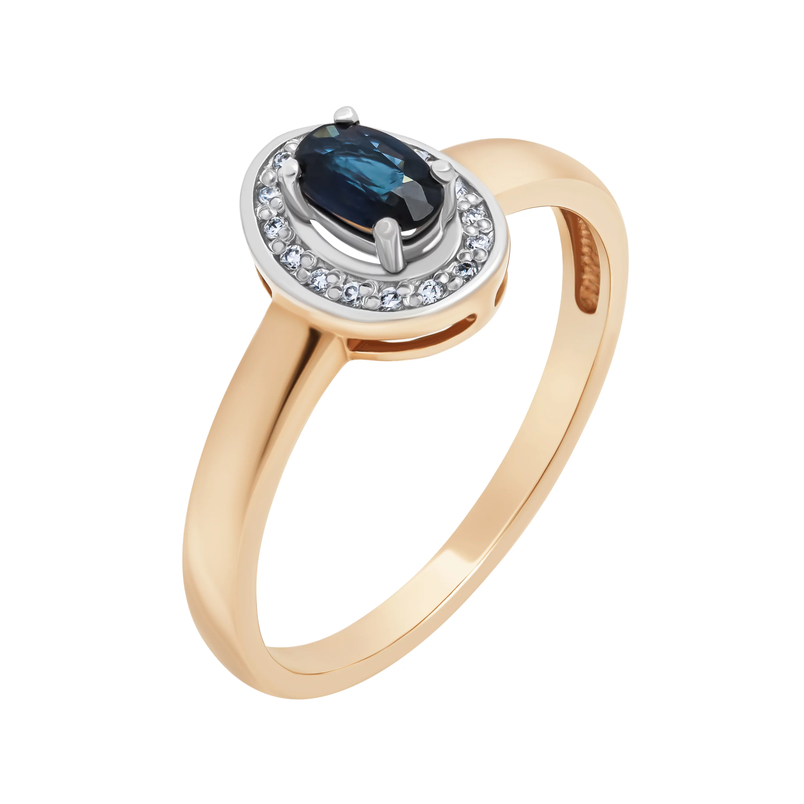Кольцо в комбинированном золоте с сапфиром и дорожкой бриллиантов - 1801472