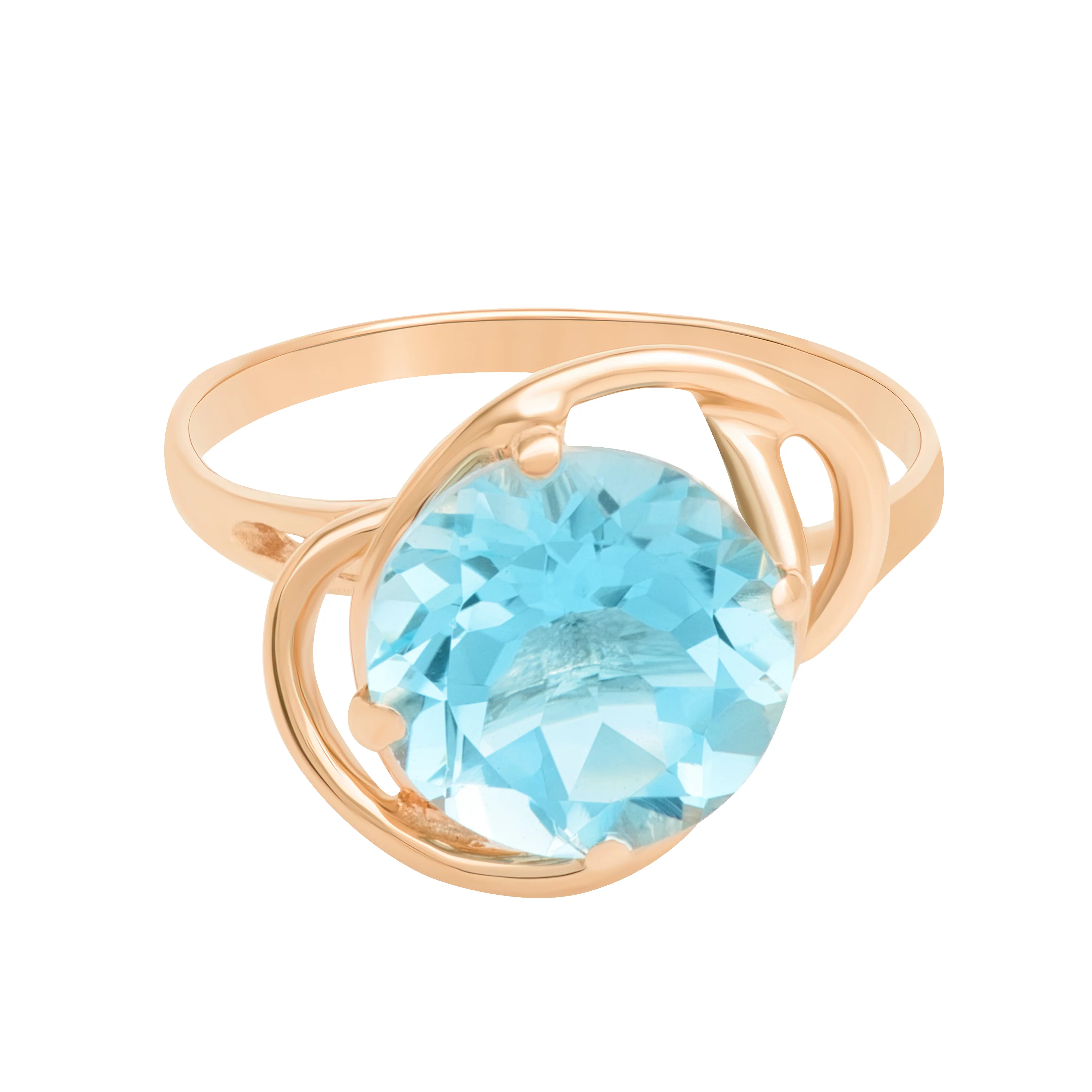 Стильное кольцо в геометричном стиле в красном золоте с топазом и фианитами - 1939740