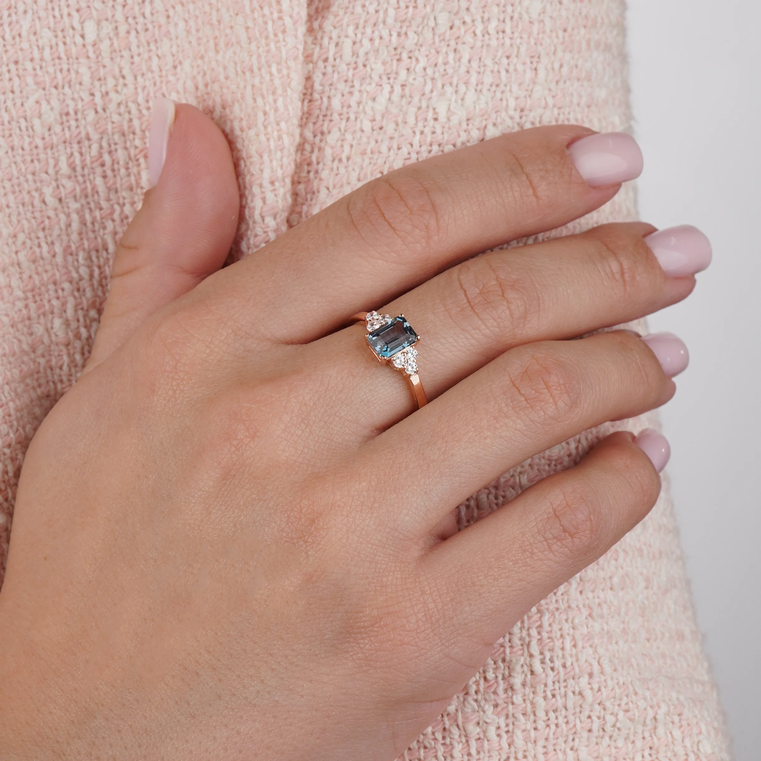 Кольцо в красном золоте с топазом лондон и фианитами - 2219338