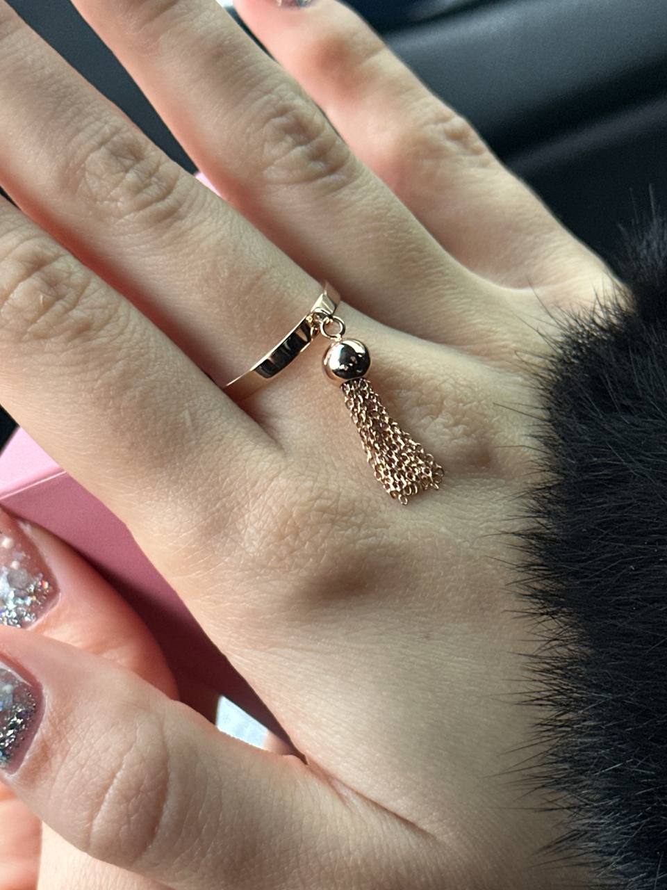 Элегантное кольцо с подвесом в форме монетки из комбинированного золота - 1921885