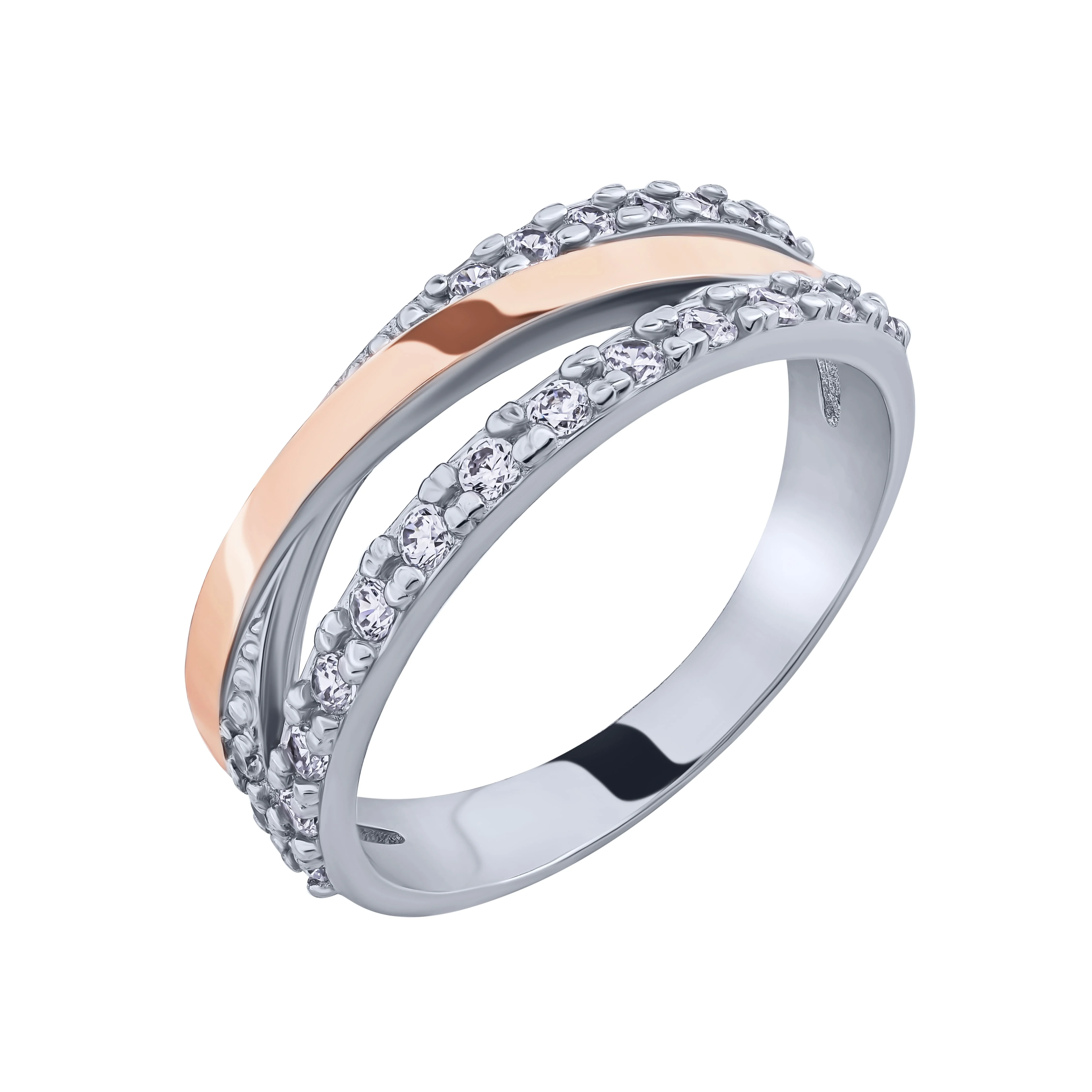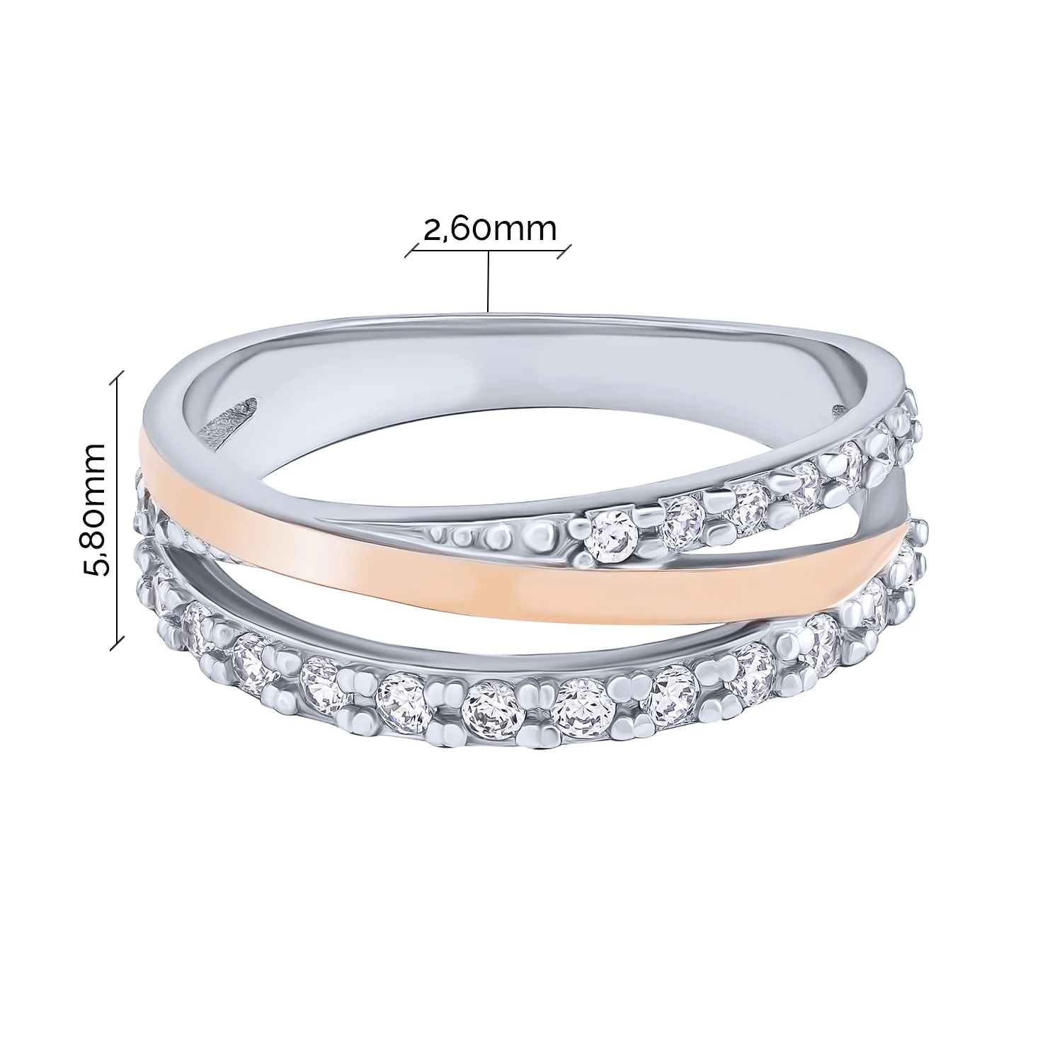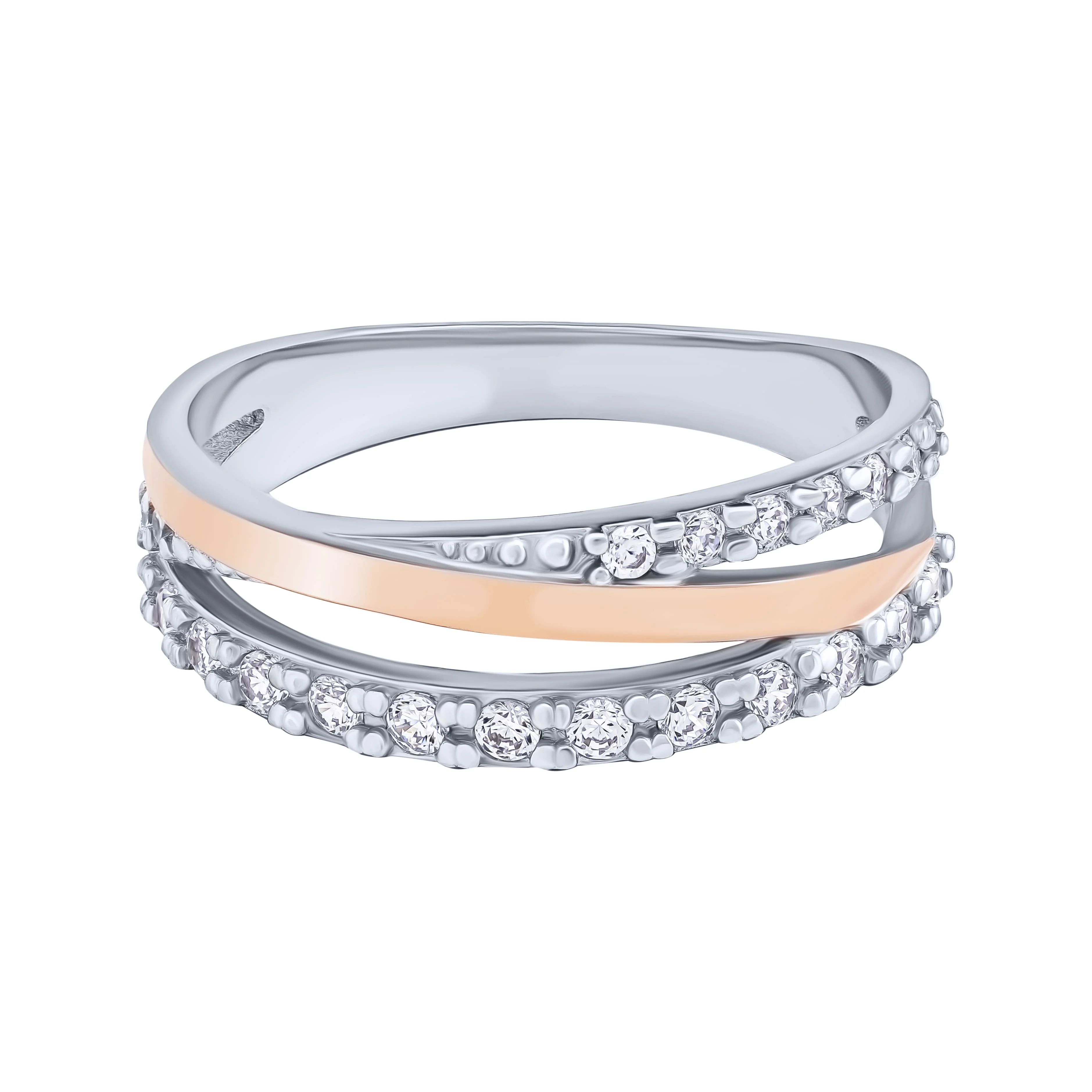 Тройное кольцо в серебре "Переплетение" с фианитами и золотой накладкой - 2081387