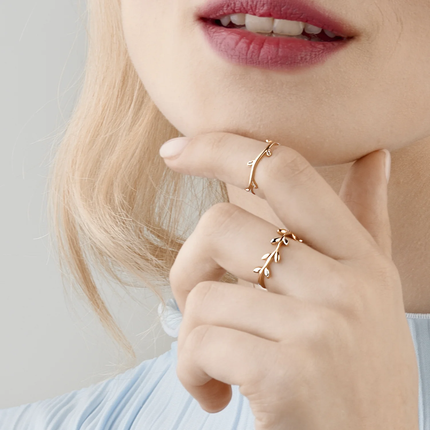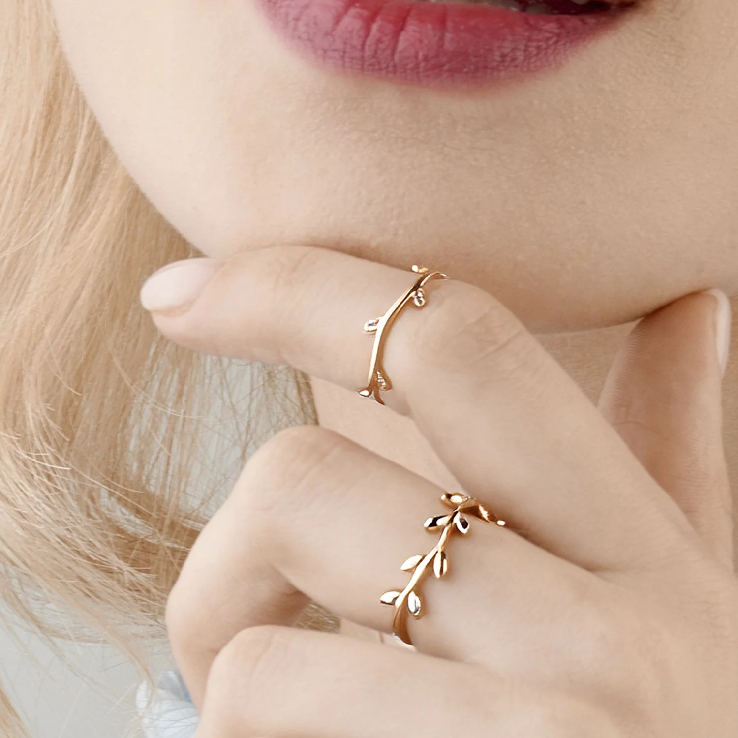 Кольцо Веточка с фианитами из красного золота - 1450763