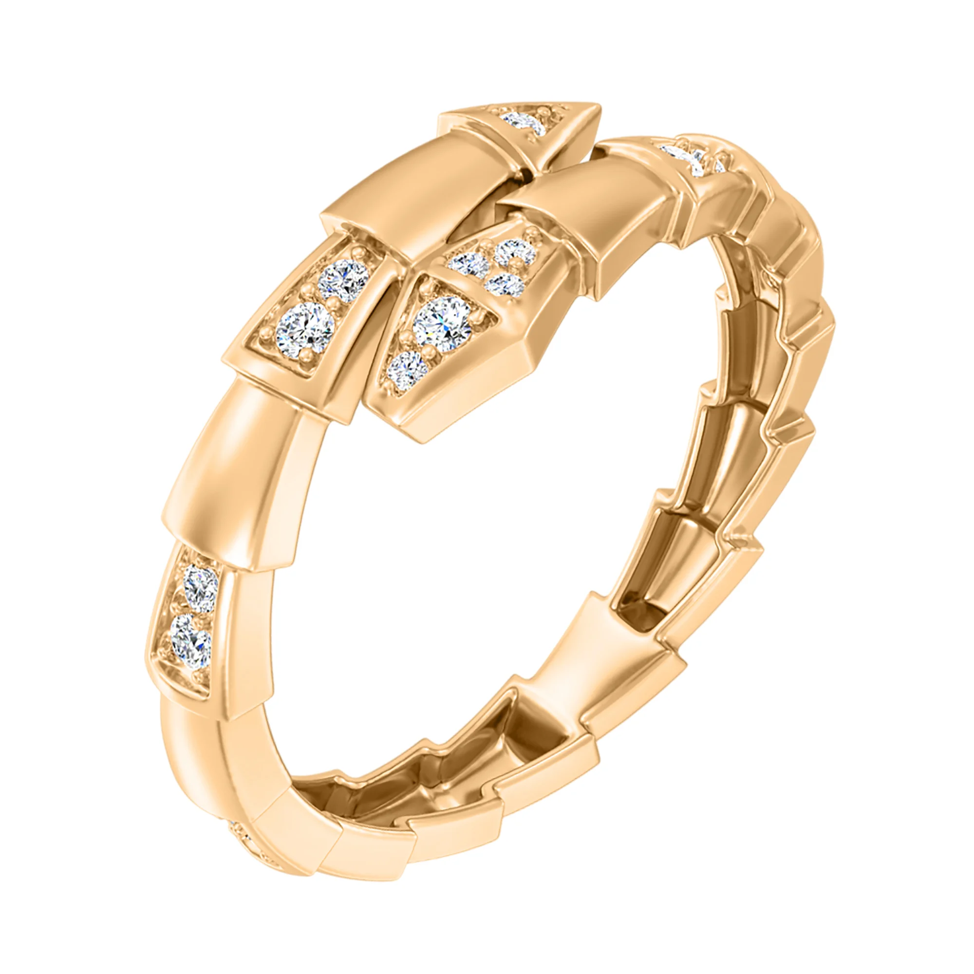 Кольцо "Змея" из красного золота с фианитами - 2123887