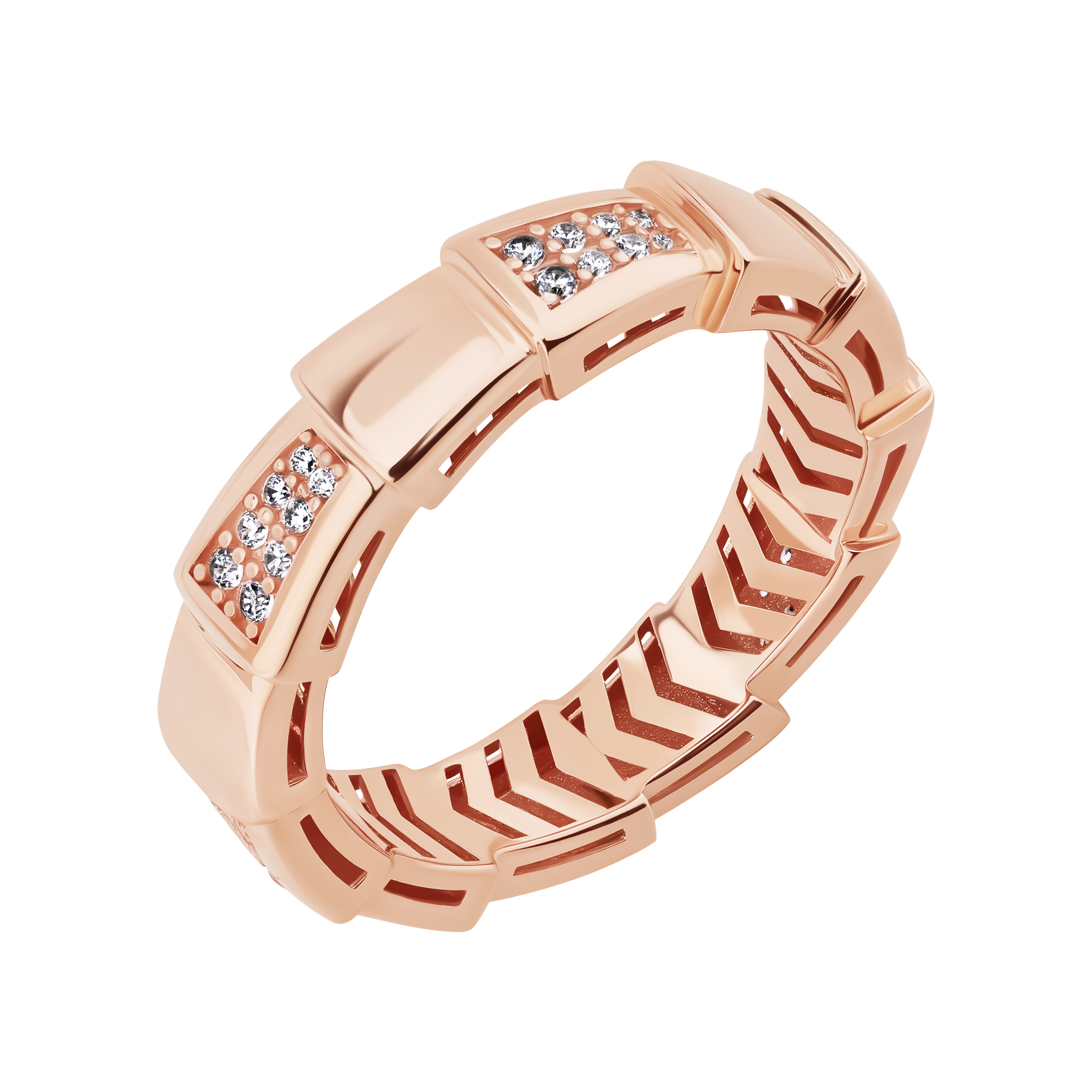 Кольцо "Змея" из красного золота с фианитами - 2129521