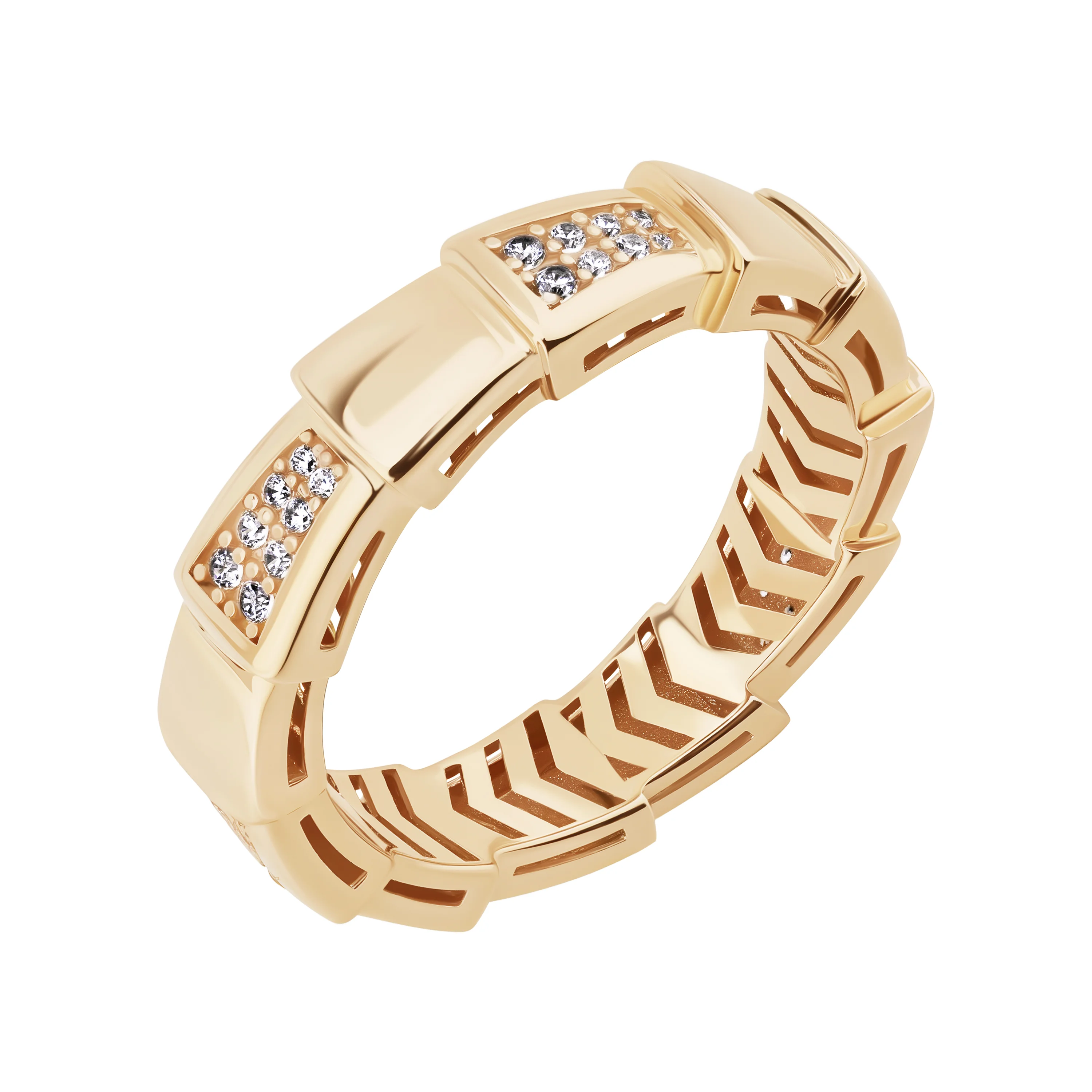 Кольцо "Змея" в желтом золоте с фианитами - 2093309