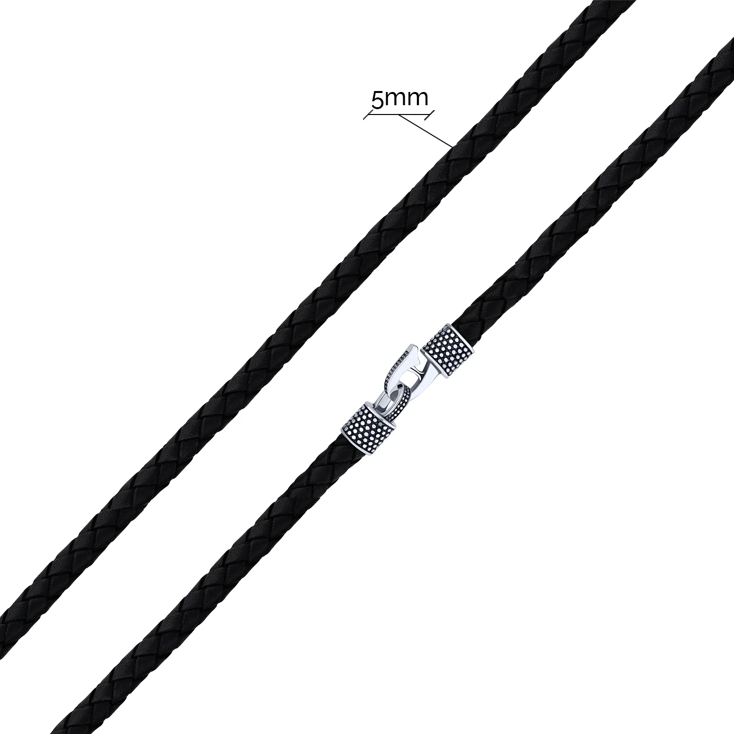 Кожаный браслет с замком из серебра с чернением - 2117834