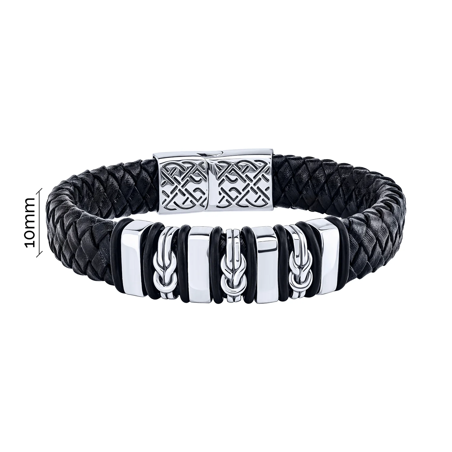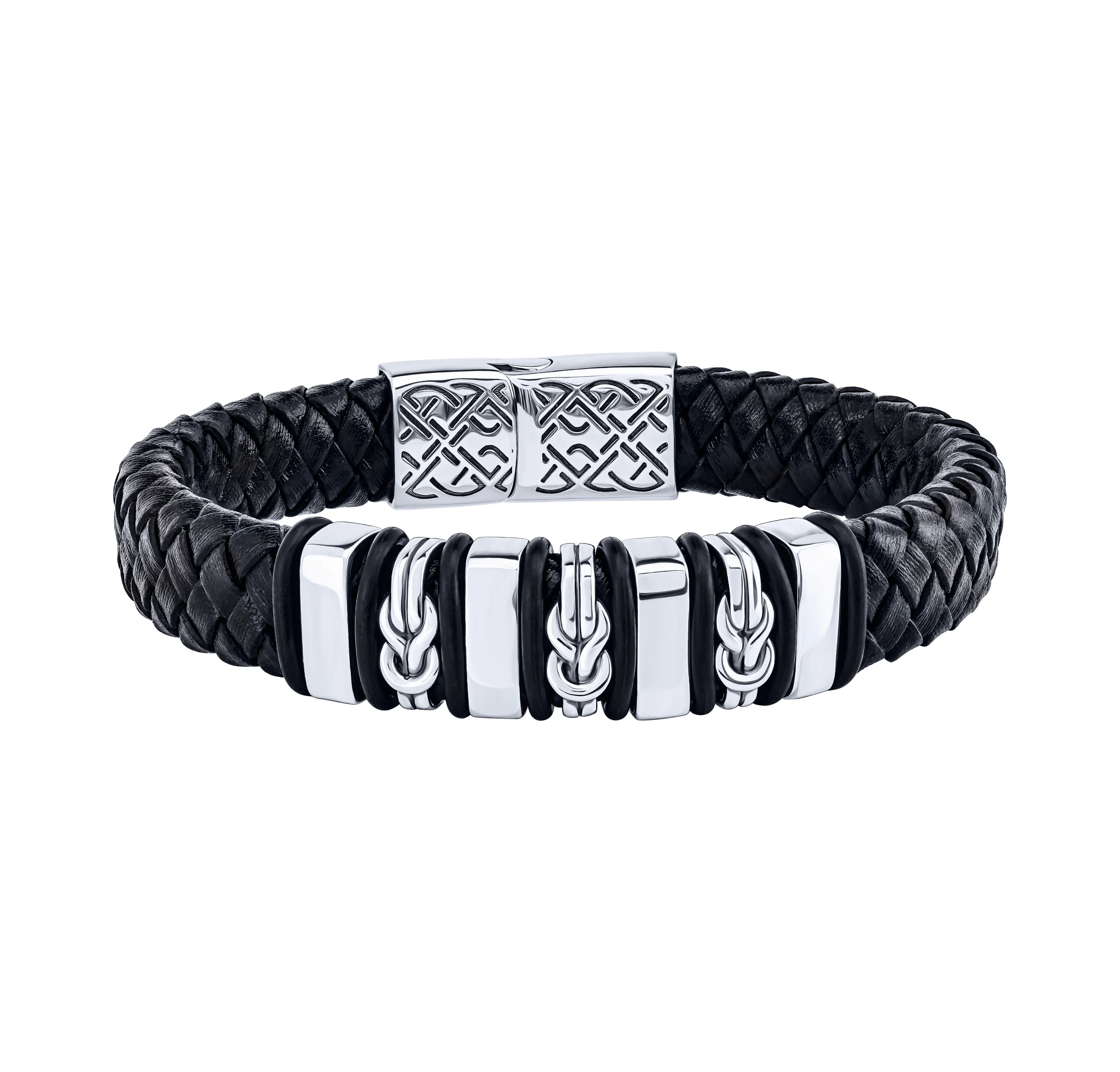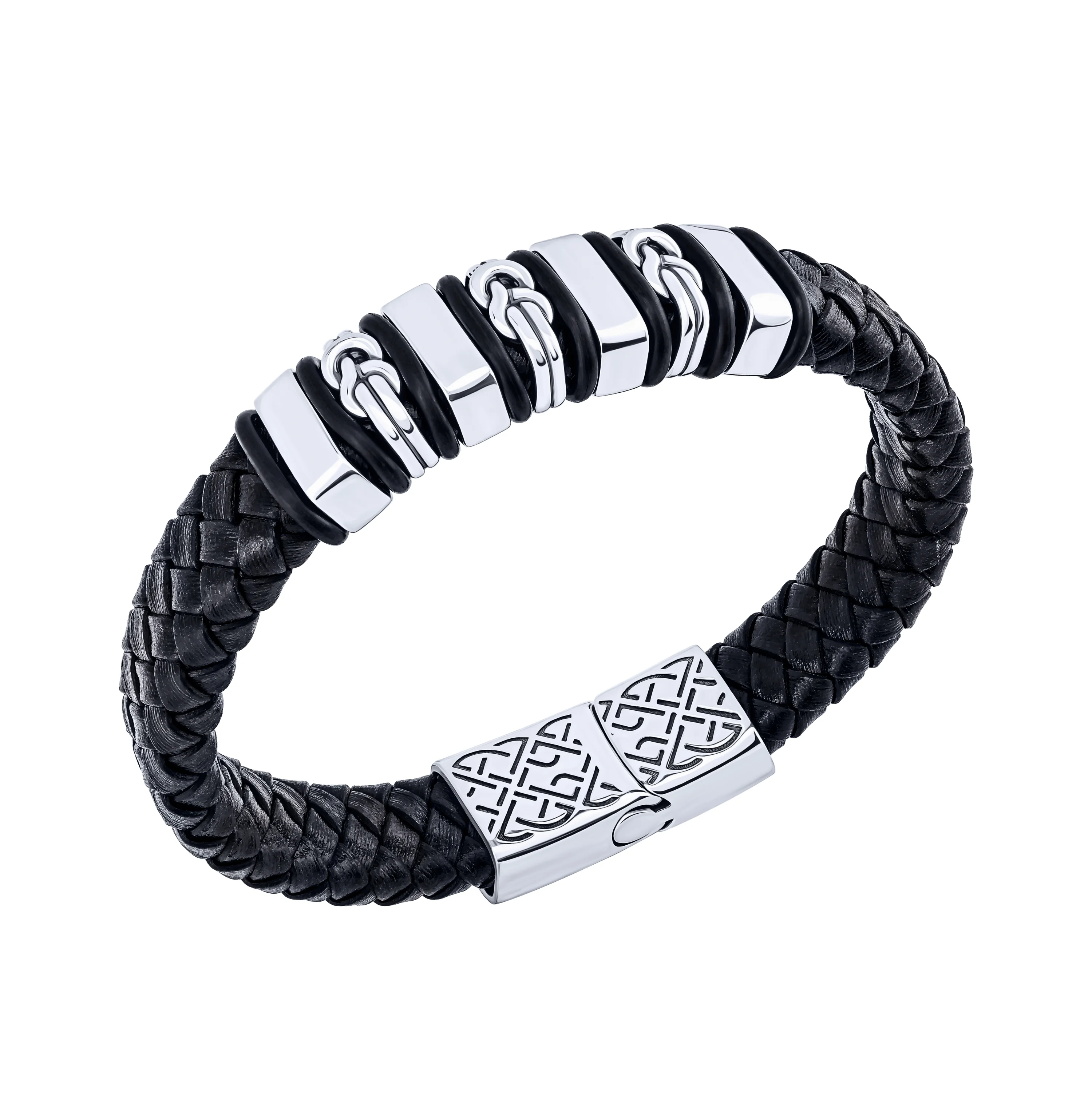 Кожаный браслет со ставками из серебра и чернением - 2089219