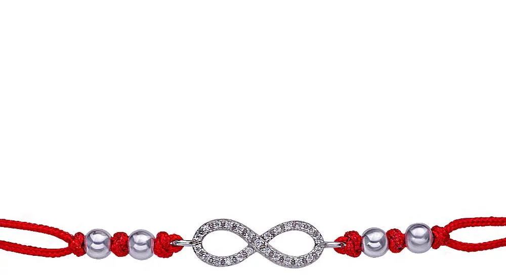 Красная нить с серебряной вставкой "Бесконечность" - 457908