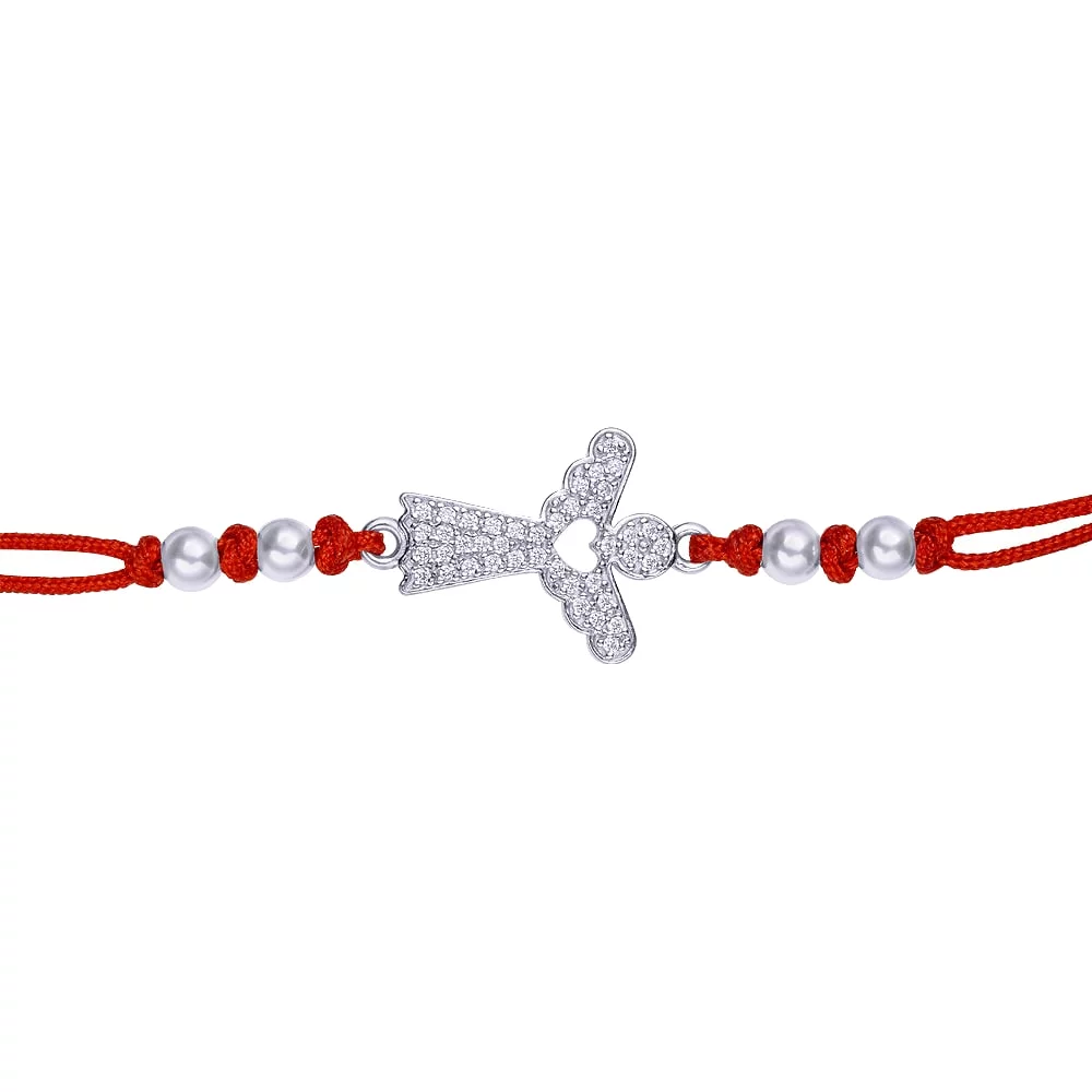 Браслет из шелка с серебряной вставкой Ангел и фианитом - 457914