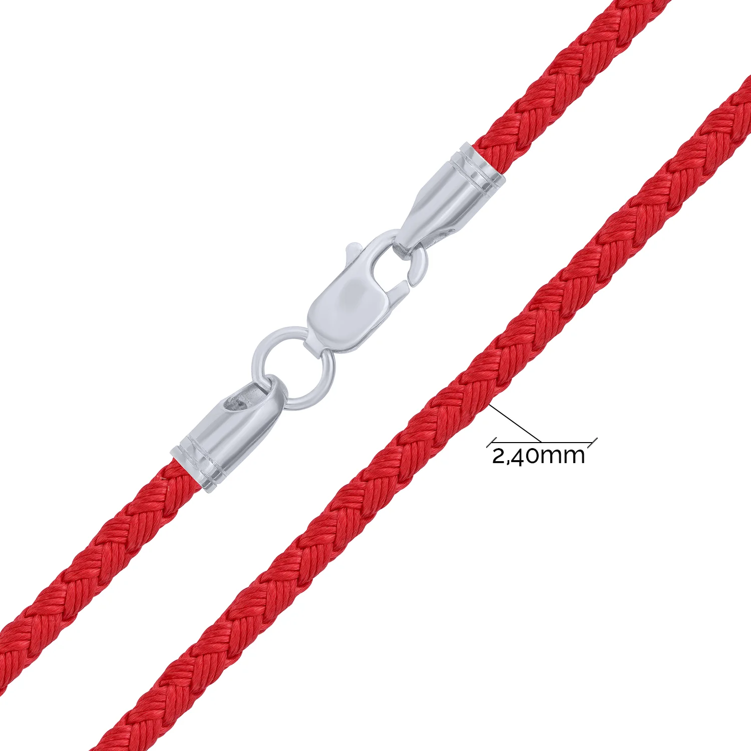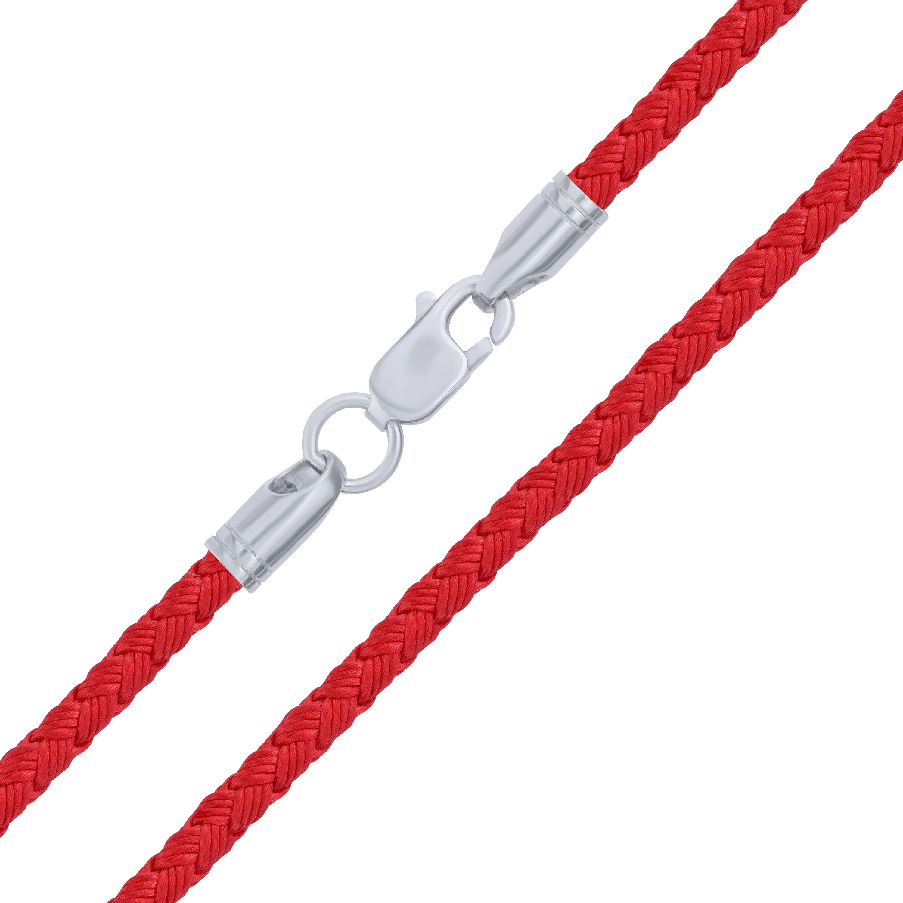 Красный шелковый браслет с серебряной вставкой "Тризуб-Герб Украины" - 1706421