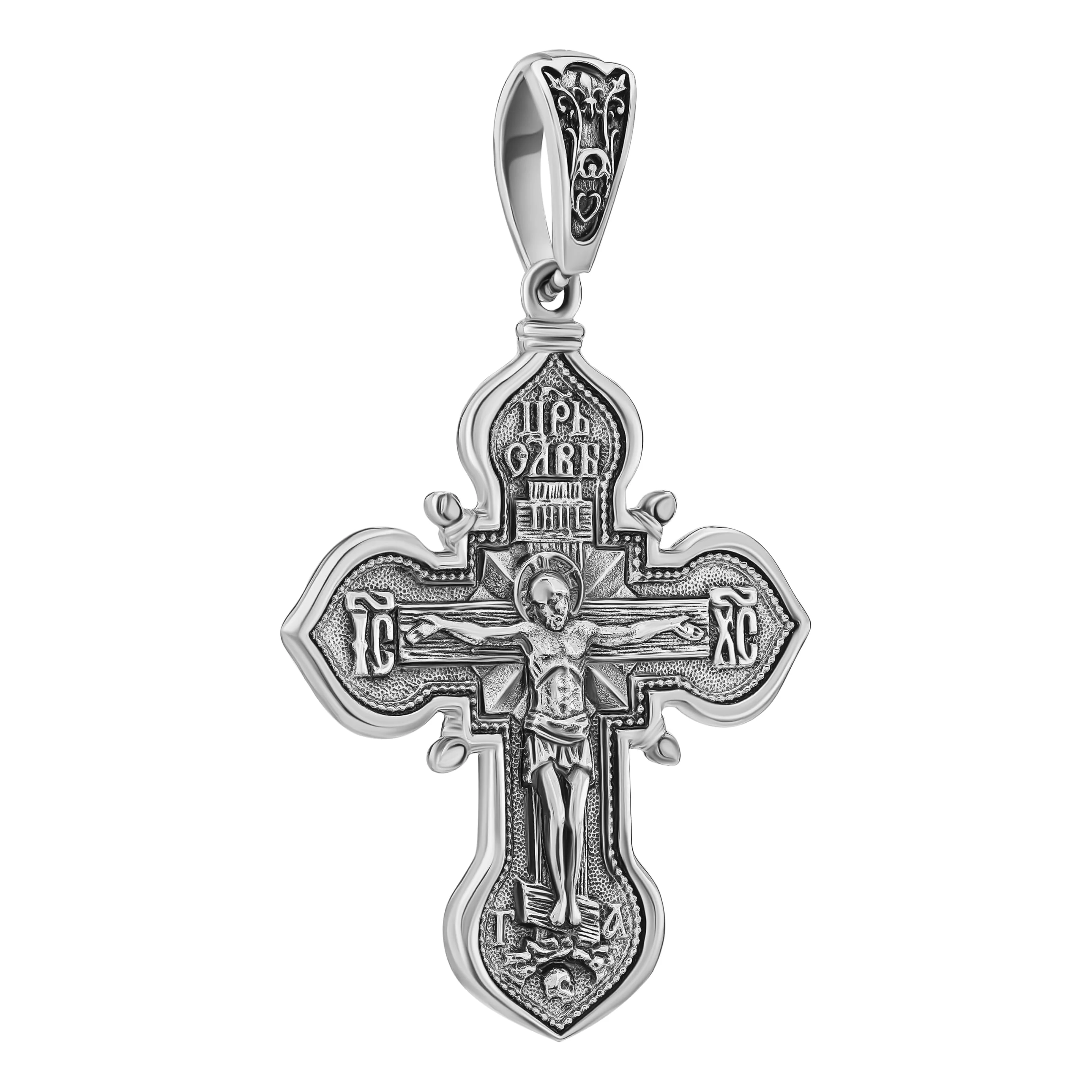 Крест из серебра "Иисус Христос" с чернением - 1982152