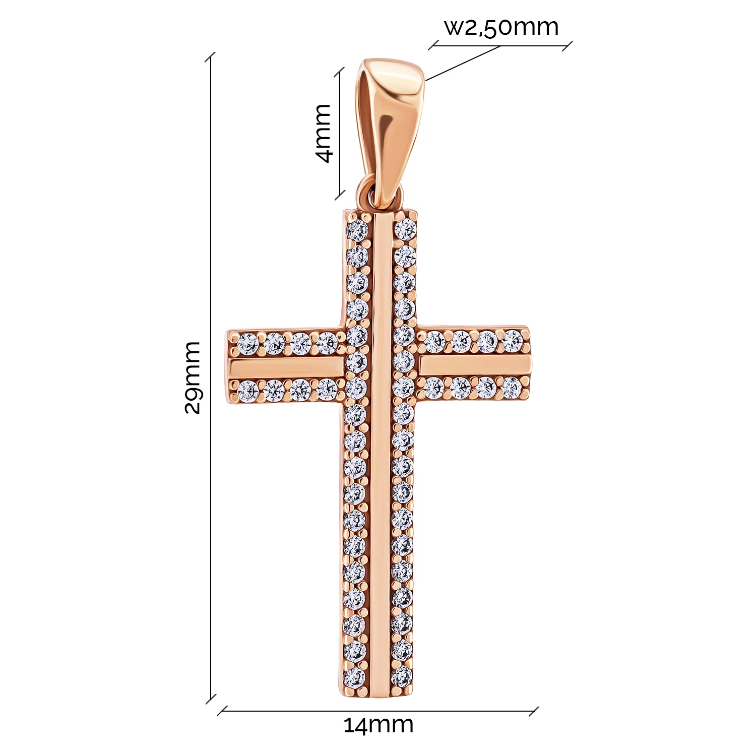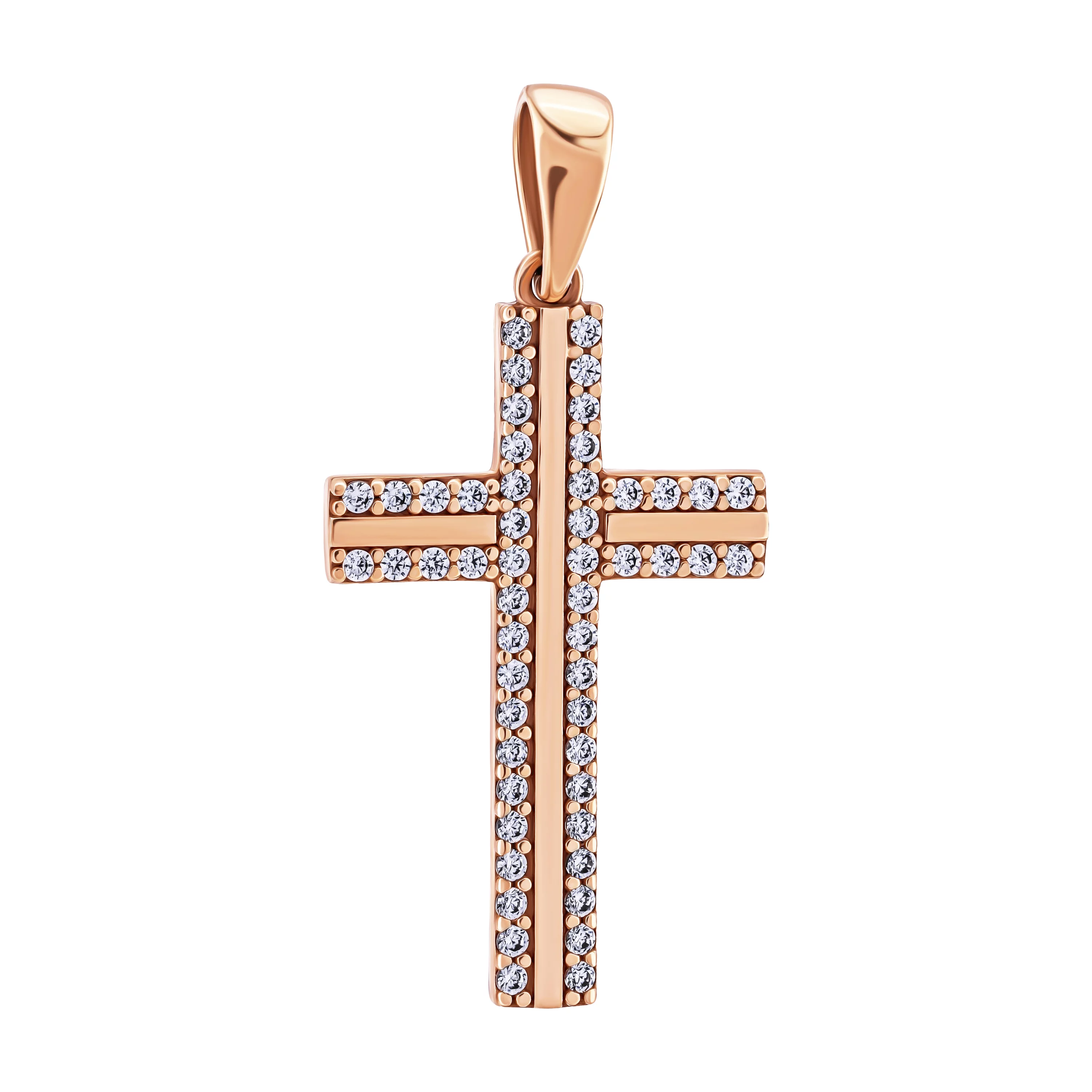 Двухсторонний крест из красного золота с черными и белыми фианитами - 466174