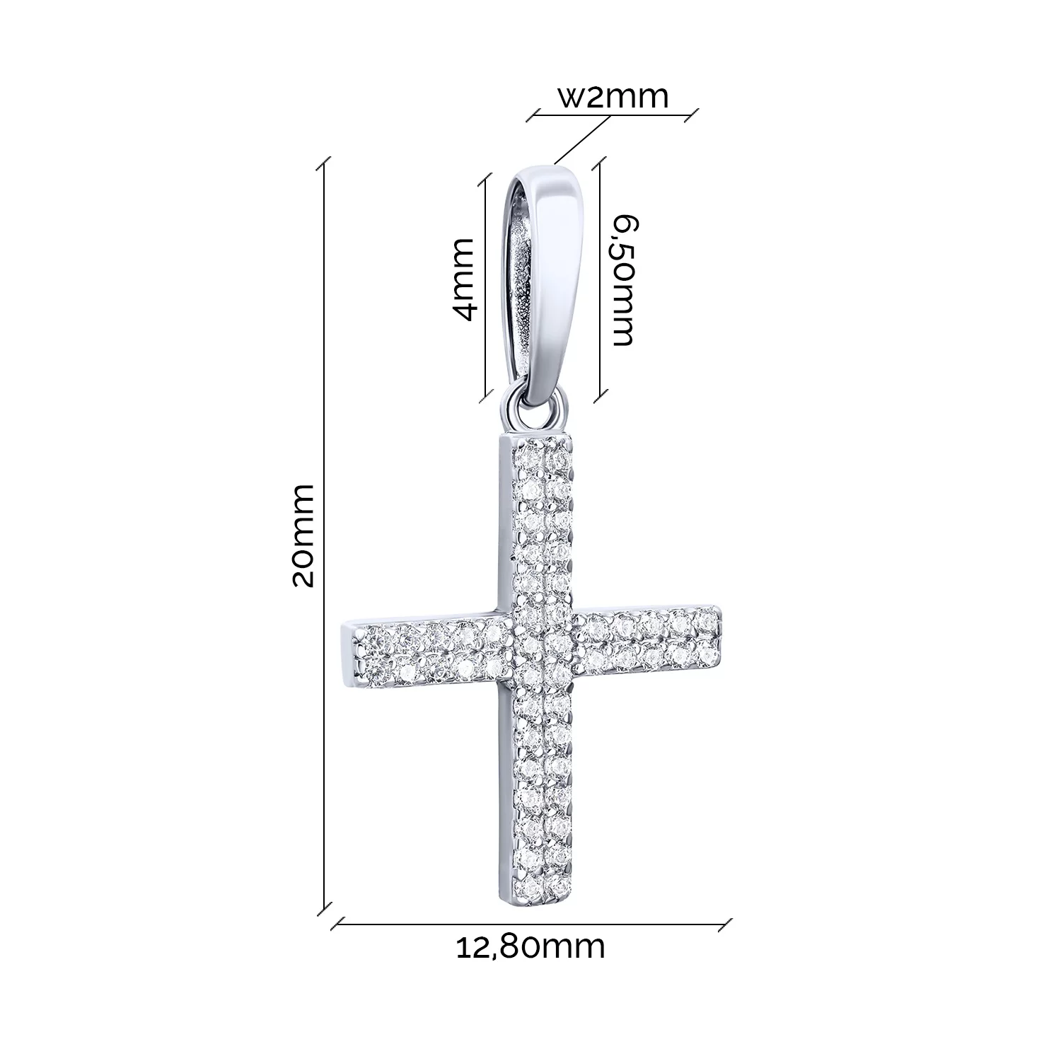 Крестик декоративный из серебра с дорожками фианитов - 1810269