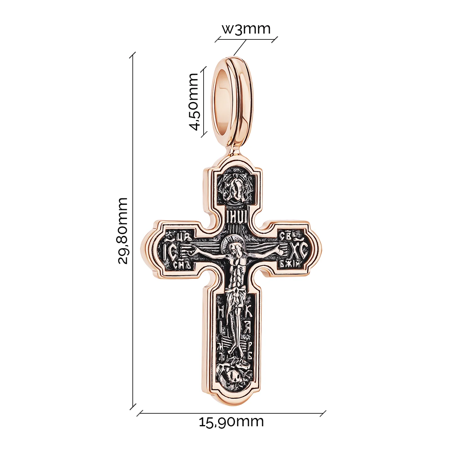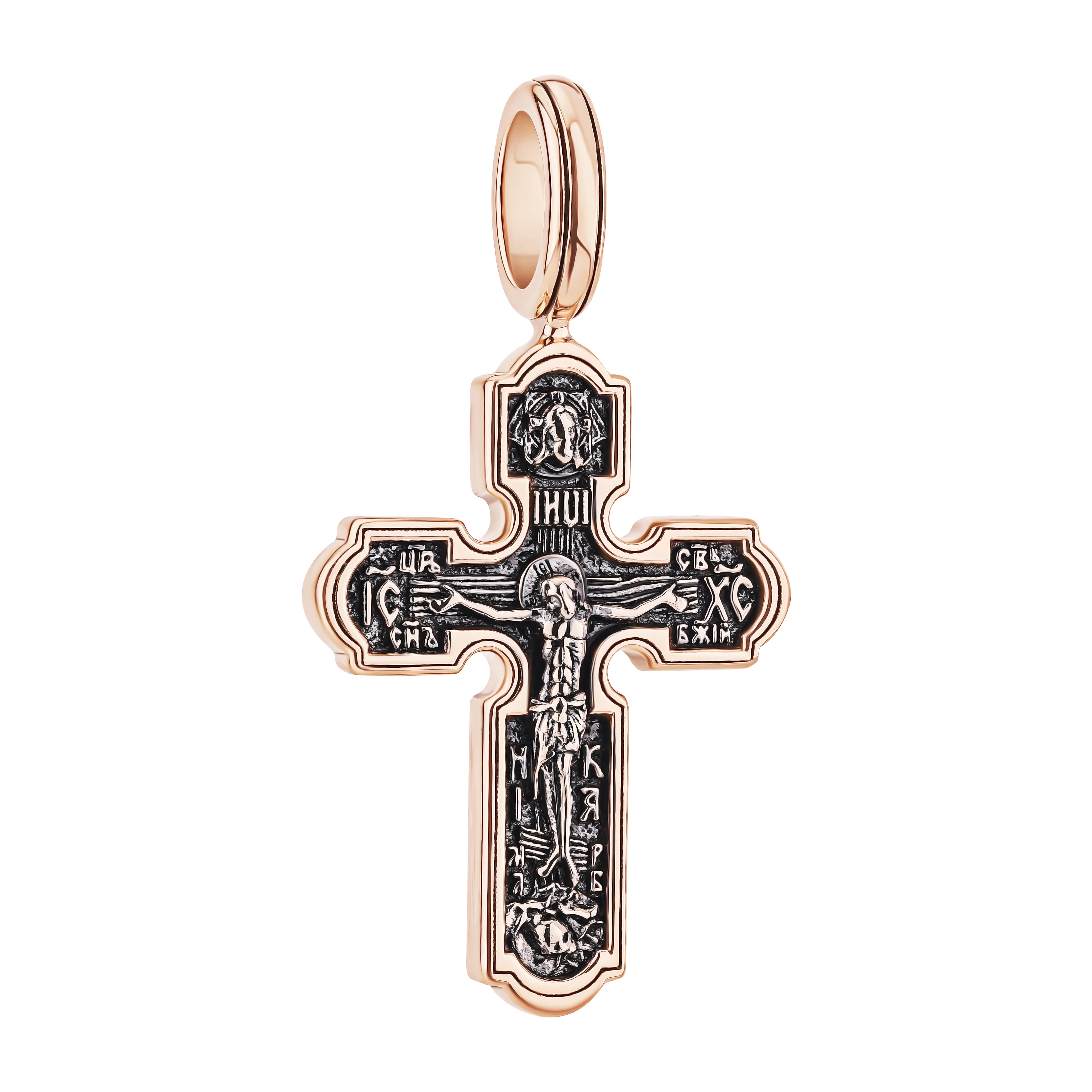 Крестик двухсторонний "Иисус Христос" в красном золоте с чернением - 1916321