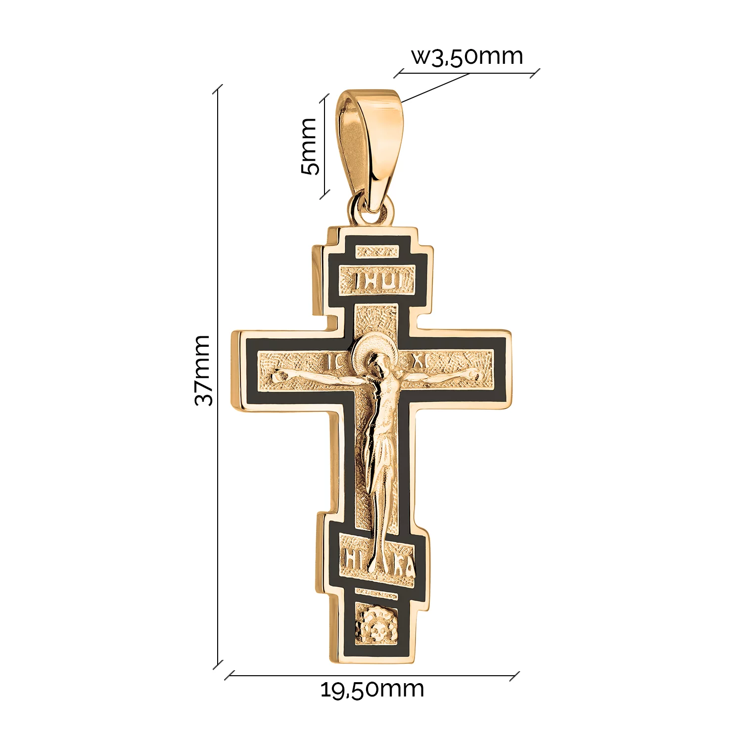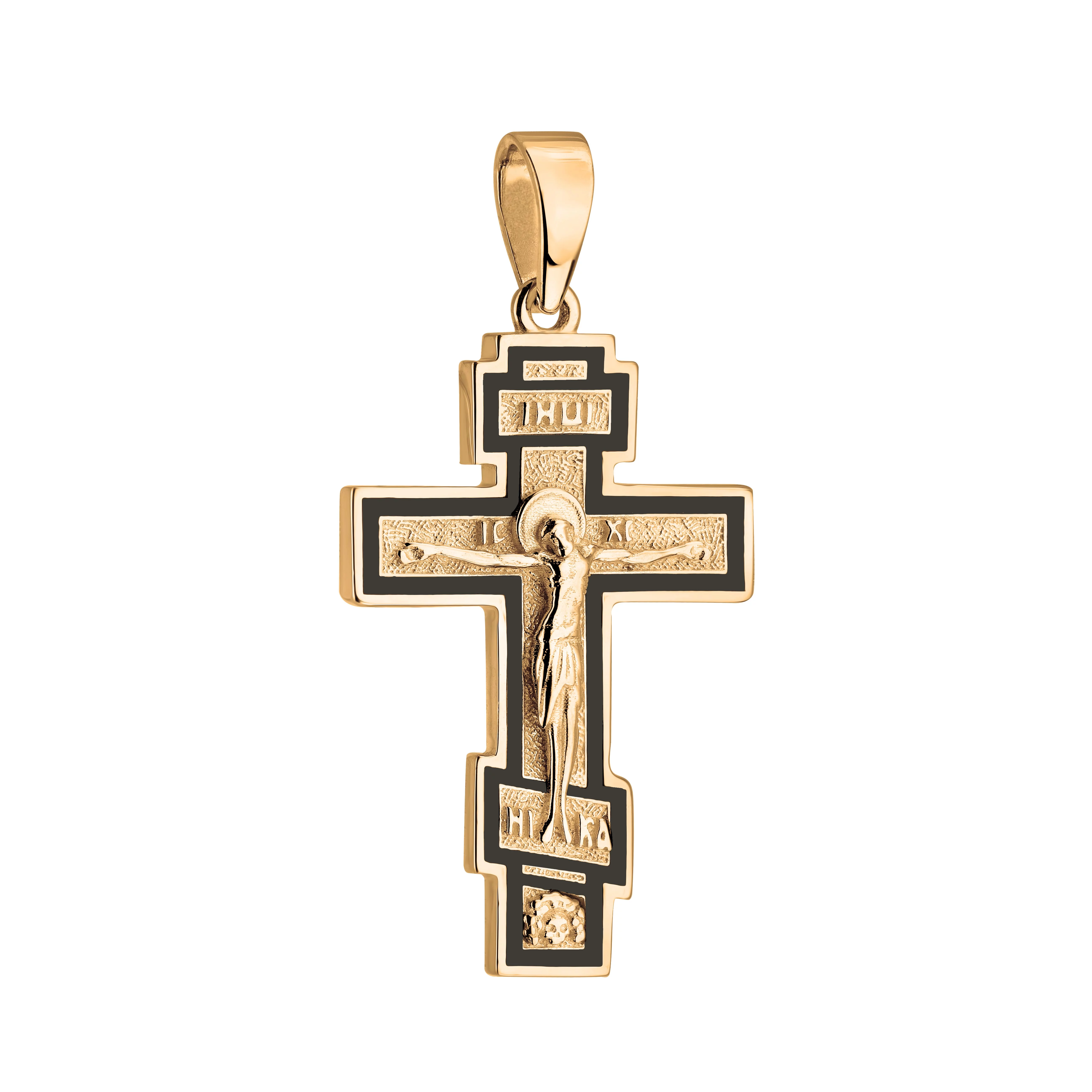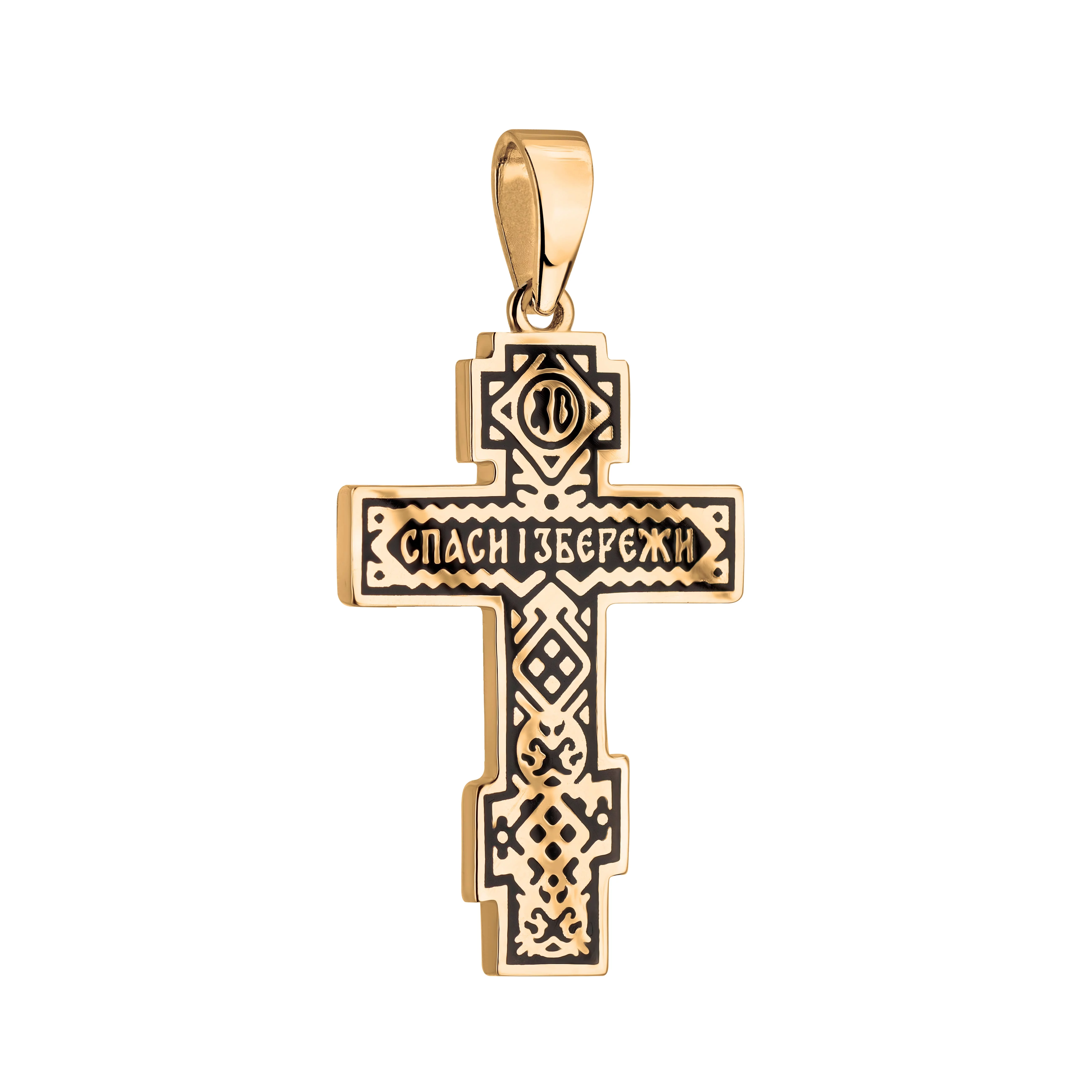 Крестик православный "Иисус Христос" из комбинированного золота с эмалью - 1916192