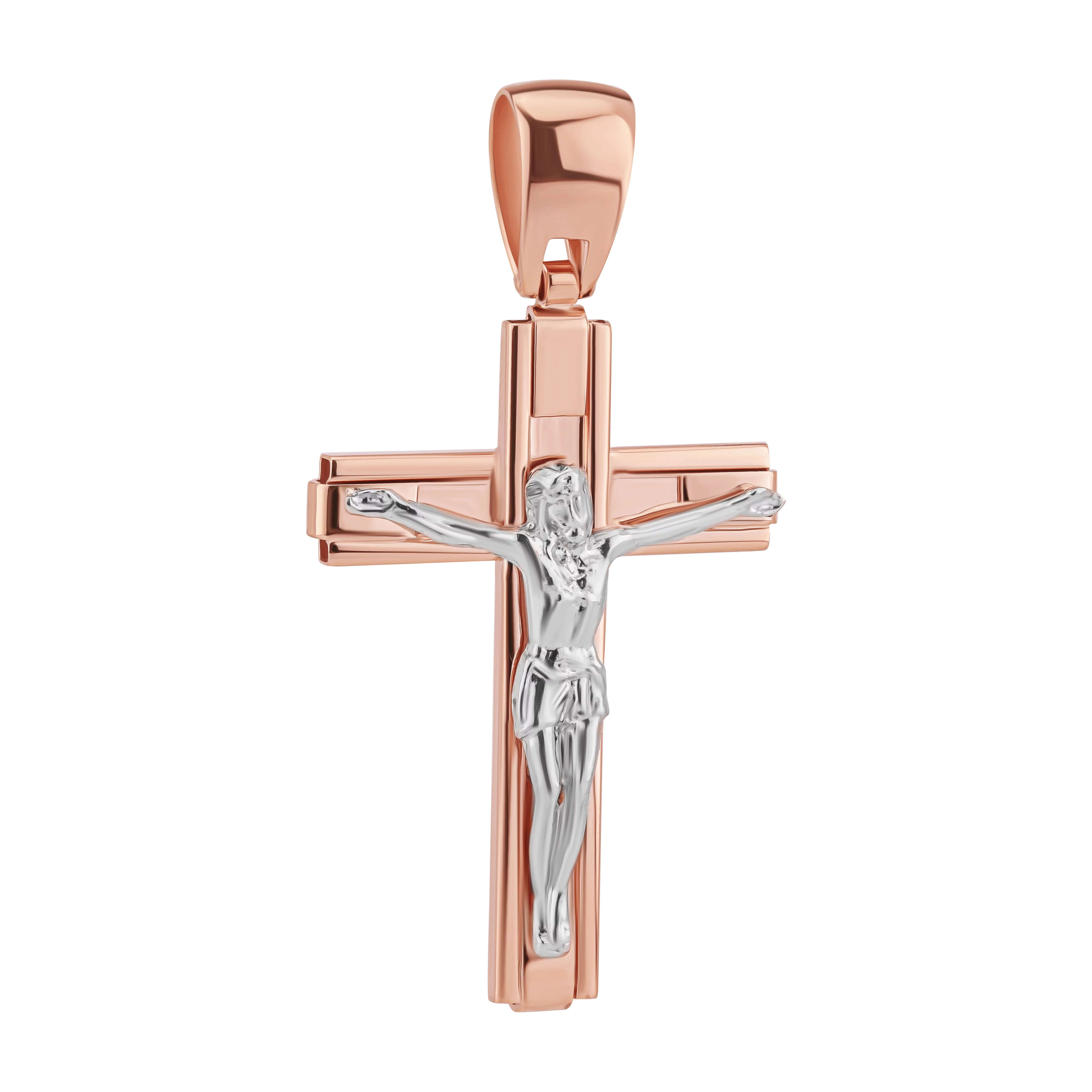 Крестик "Иисус Христос" в комбинированном золоте - 1943233