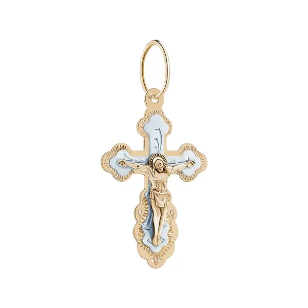 Крестик из комбинированного золота — классический нательный православный крестик, который имеет глубокий духовный смысл и является символом христианской веры. Он изготовлен из драгоценного металла 585 пробы. Классическая трехлистная крестоподобная оправа из красного золота украшена изысканной гравировкой и утонченной традиционной орнаментальной резьбой. В золотом изделии стильно совмещаются разные виды драгоценного металла. Центральным композиционным элементом традиционно является распятие, знаменующее духовную жертву Господа Иисуса Христа.