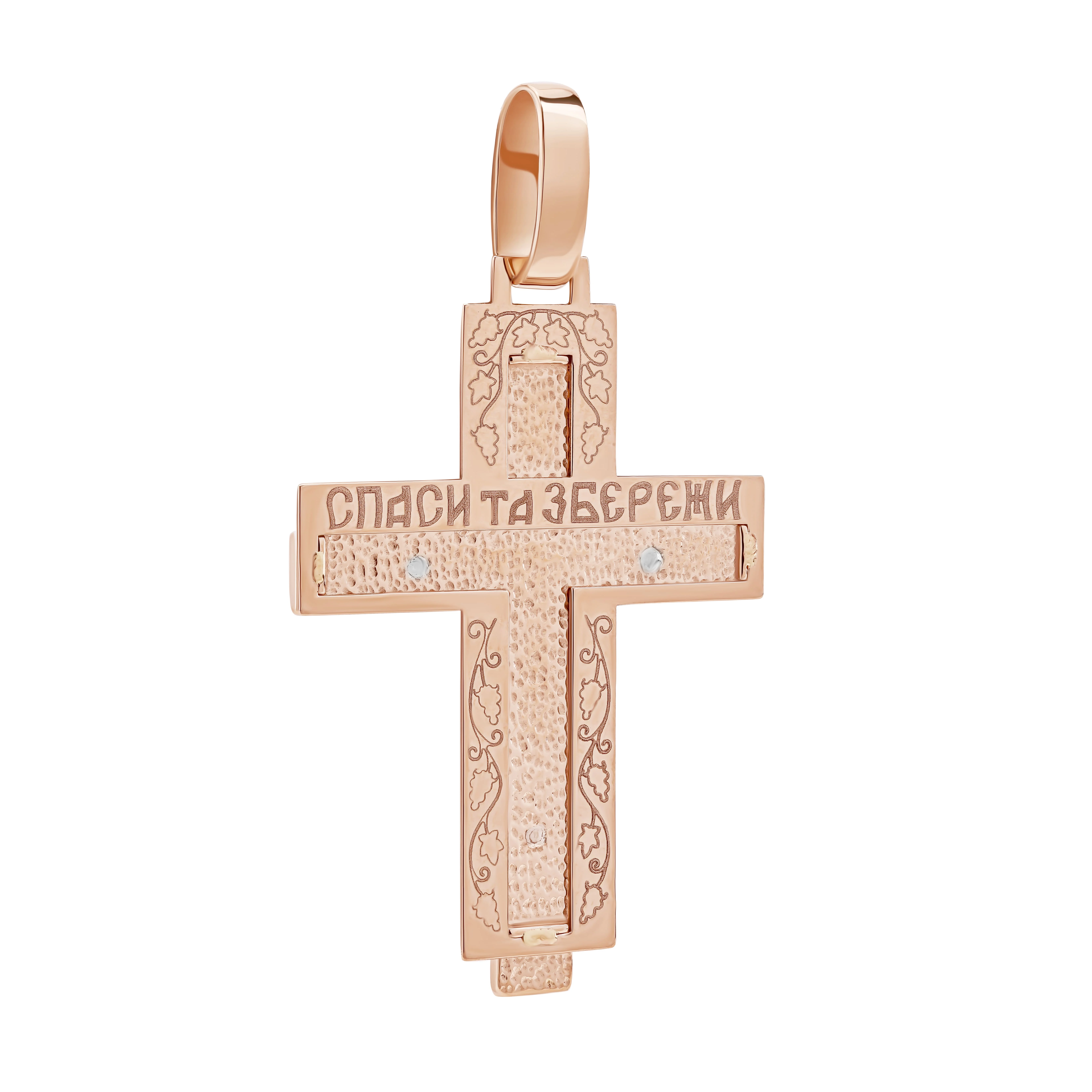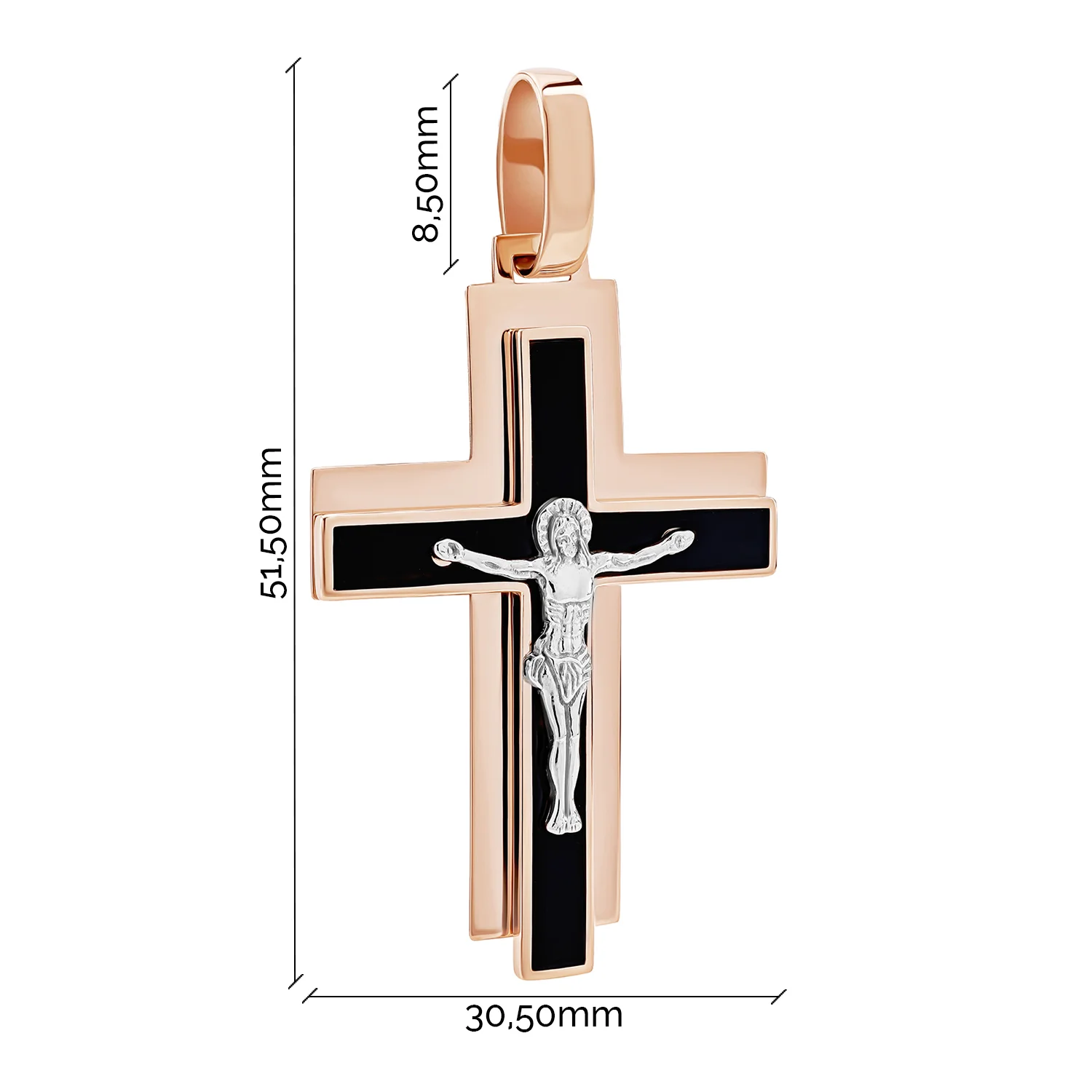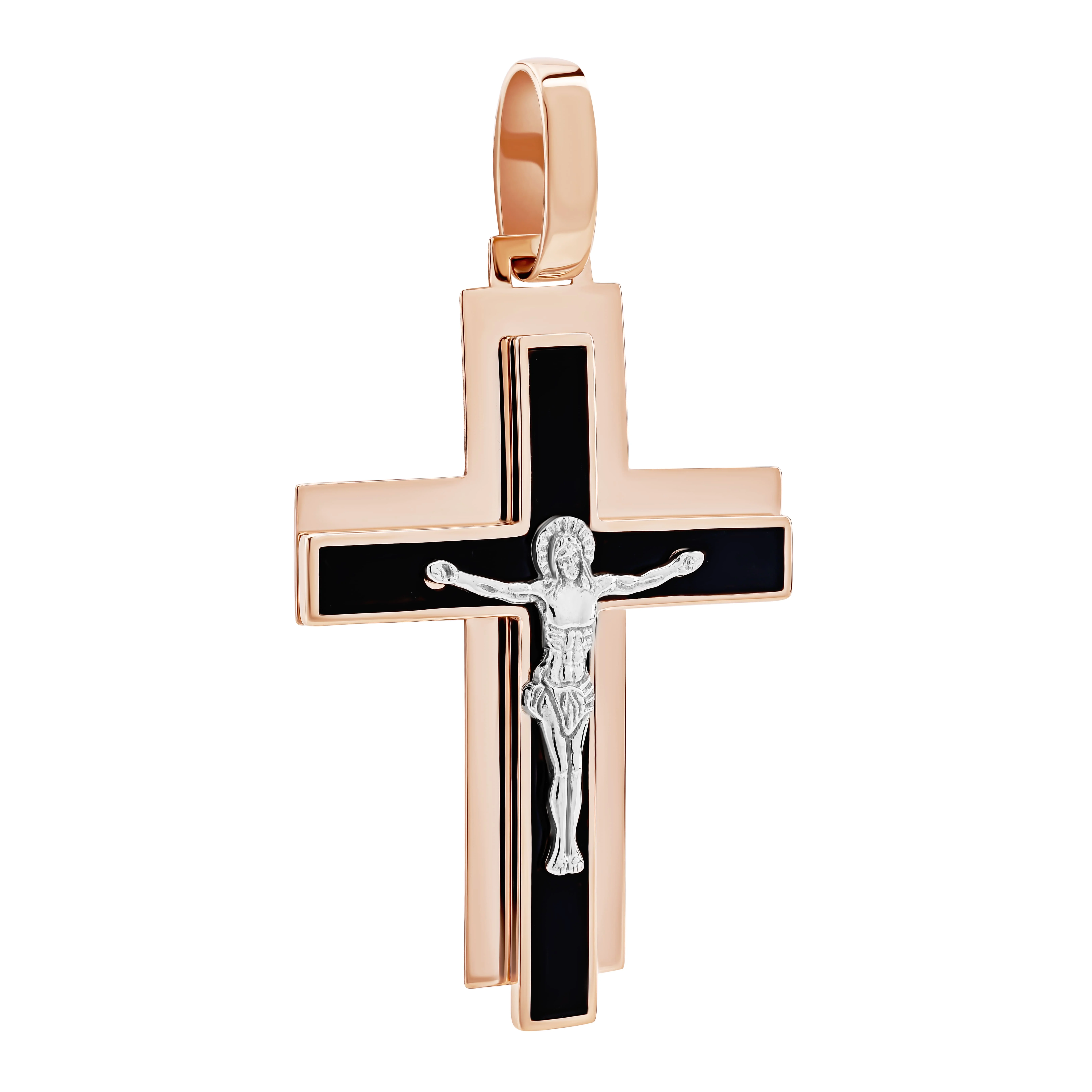 Крестик из комбинированного золота "Иисус Христос" с эмалью - 1998857