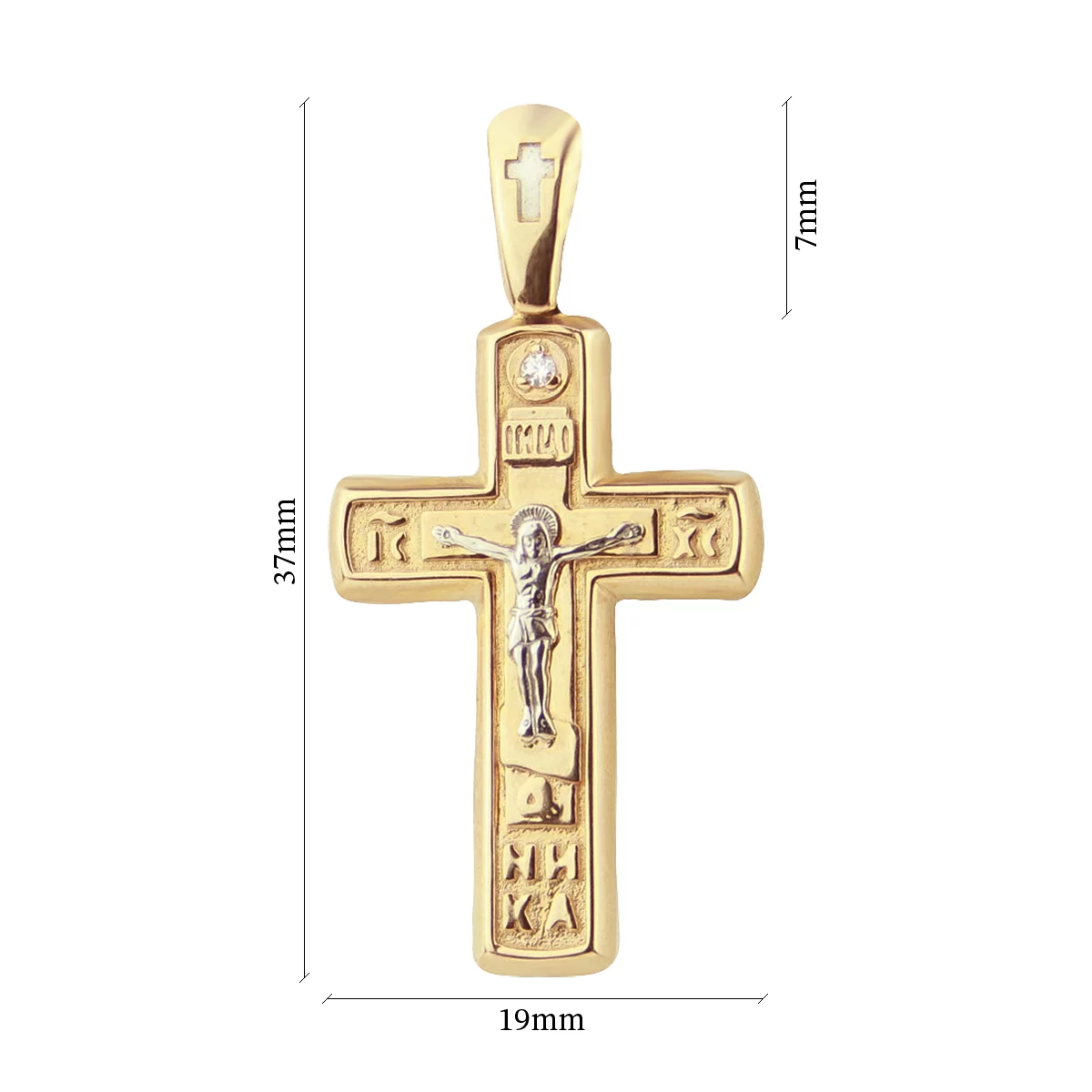 Крестик "Иисус Христос" в комбинированном золоте с эмалью и фианитами - 1951075