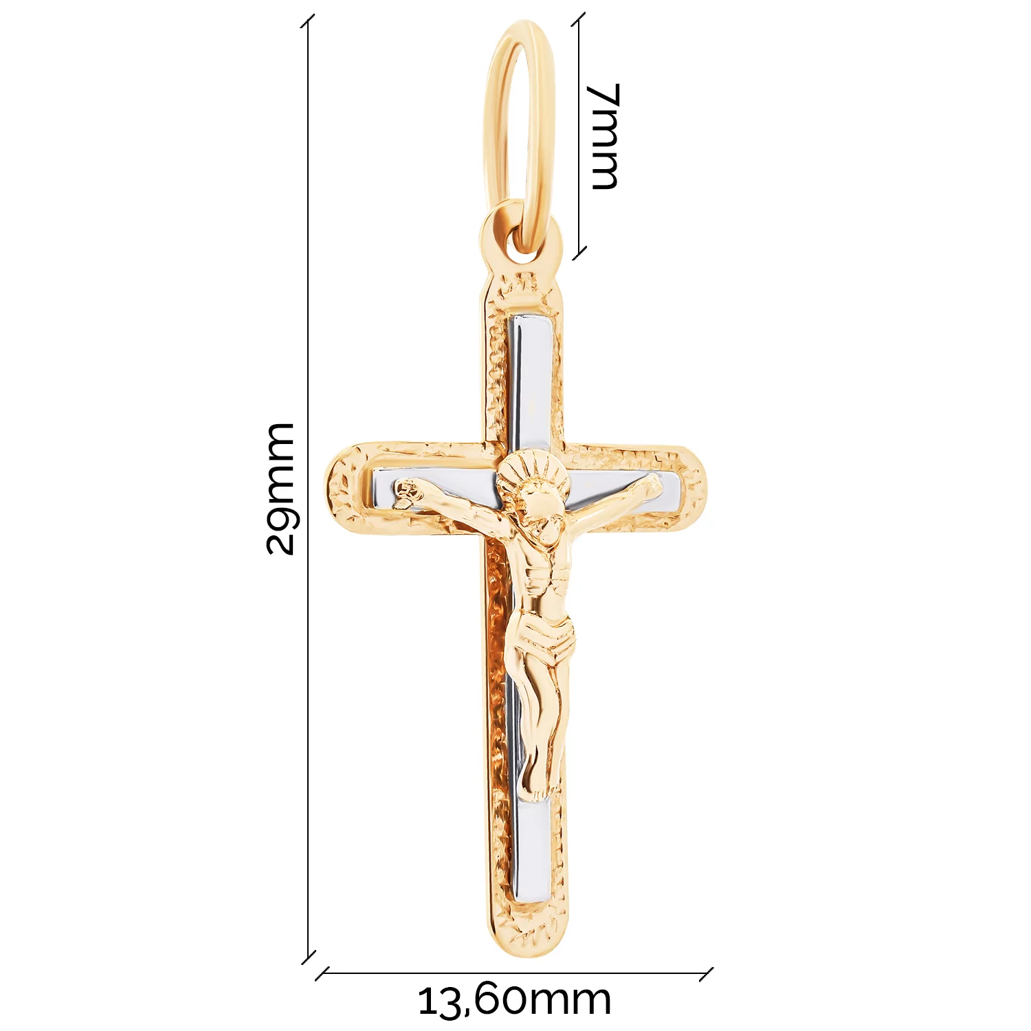 Крестик из красного и белого золота с алмазной гранью - 1534865