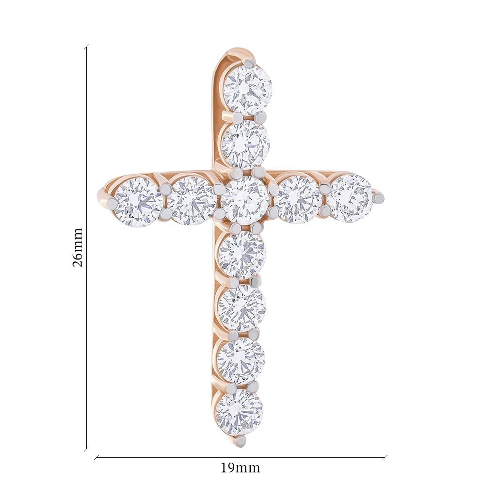 Крестик декоративный из красного золота с дорожкой бриллиантов - 1819214