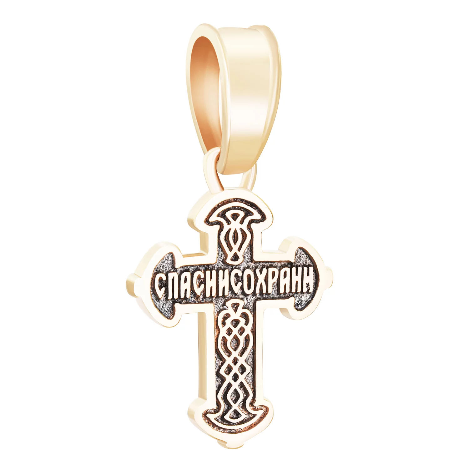 Элегантный крестик "Иисус Христос" из красного золота с чернением - 1916327