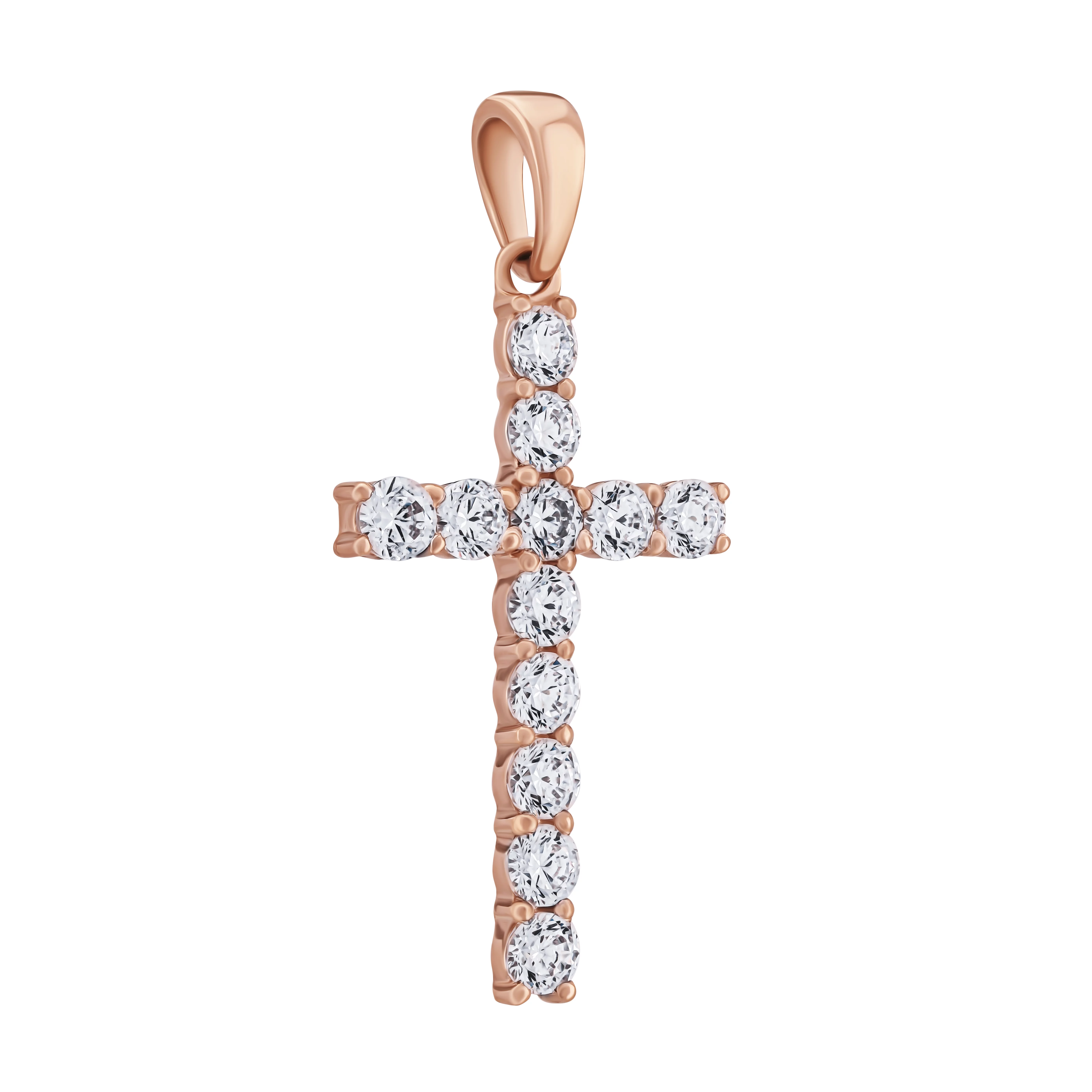 Крестик из красного золота с фианитами - 1689769