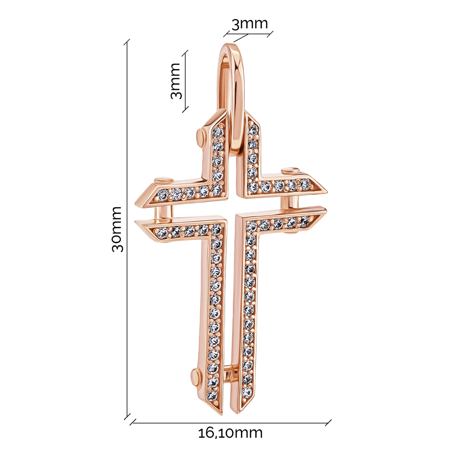 Двухсторонний крест из красного золота с черными и белыми фианитами - 466174