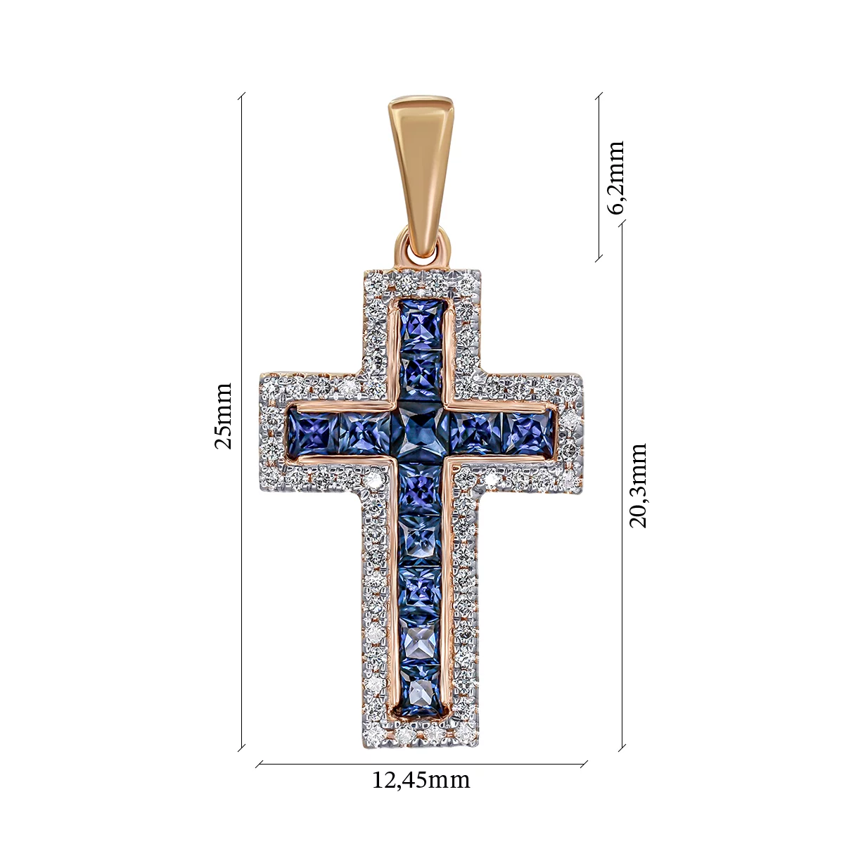 Крестик из красного золота с сапфирами и бриллиантами - 896635
