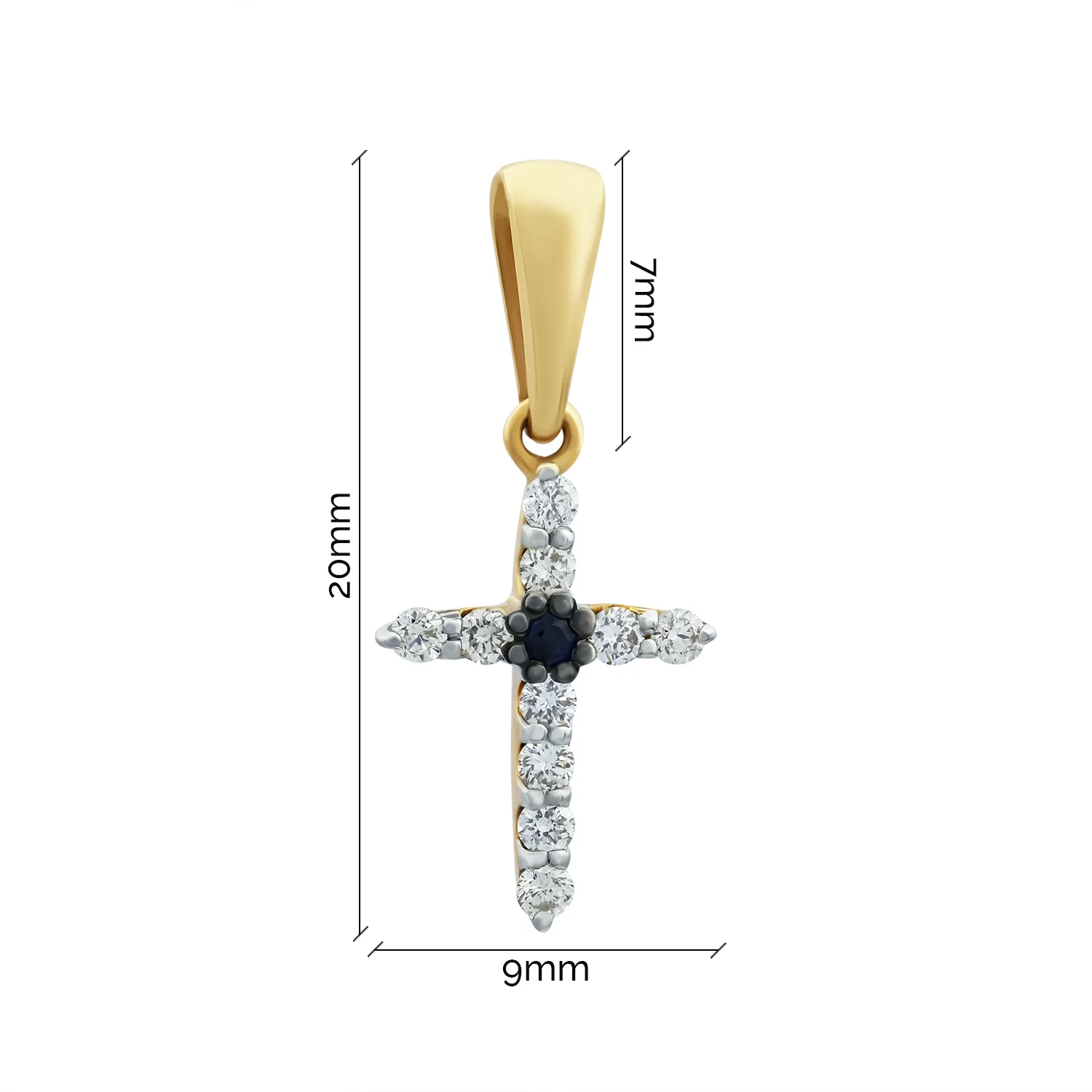 Крестик декоративный из белого золота с бриллиантами и сапфирами - 1852425