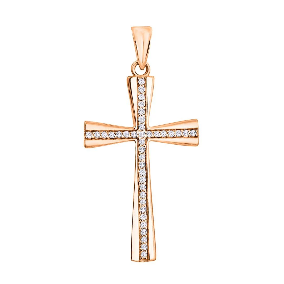 Крестик из красного золота с фианитом - 367468