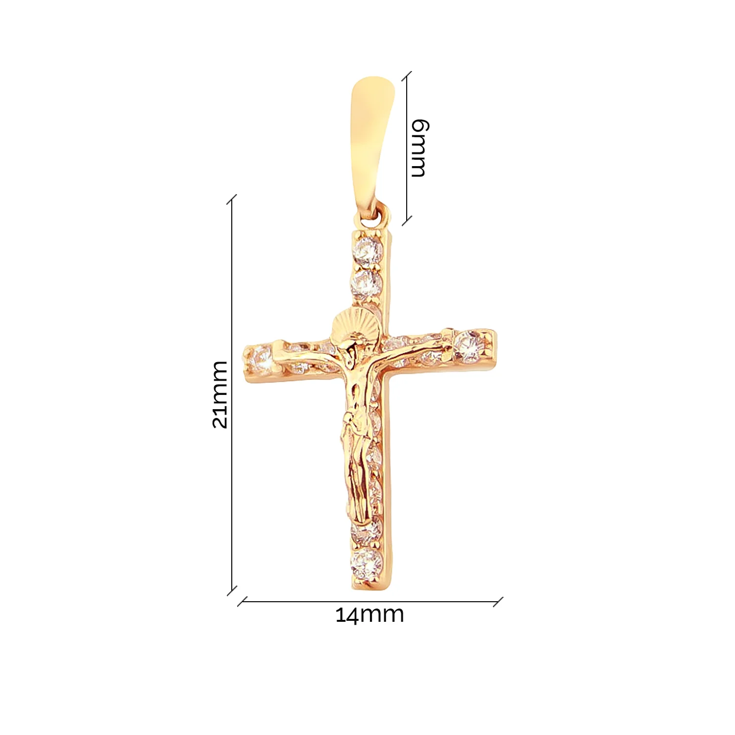 Нательный крестик с распятием и фианитами в комбинированном золоте - 1642727