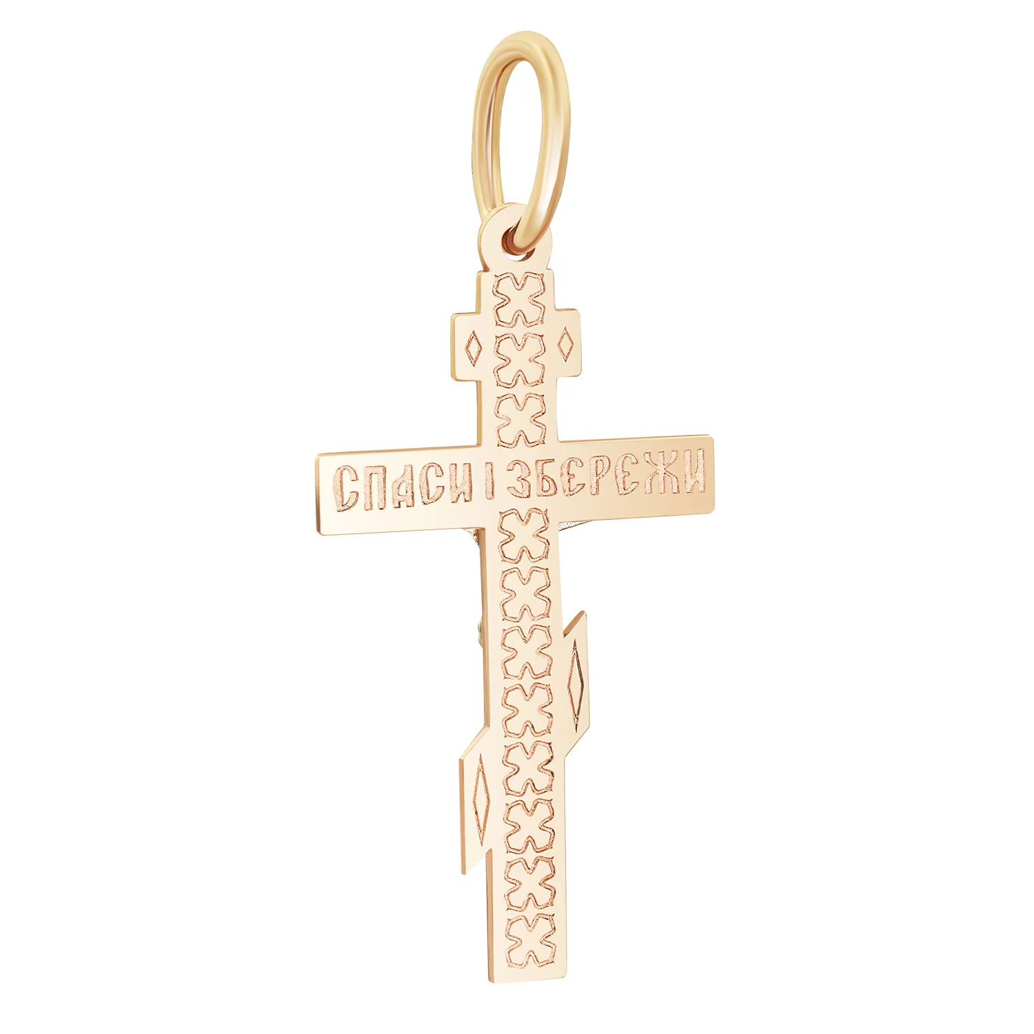 Крестик из красного и белого золота "Спаси и Сохрани" - 1557397