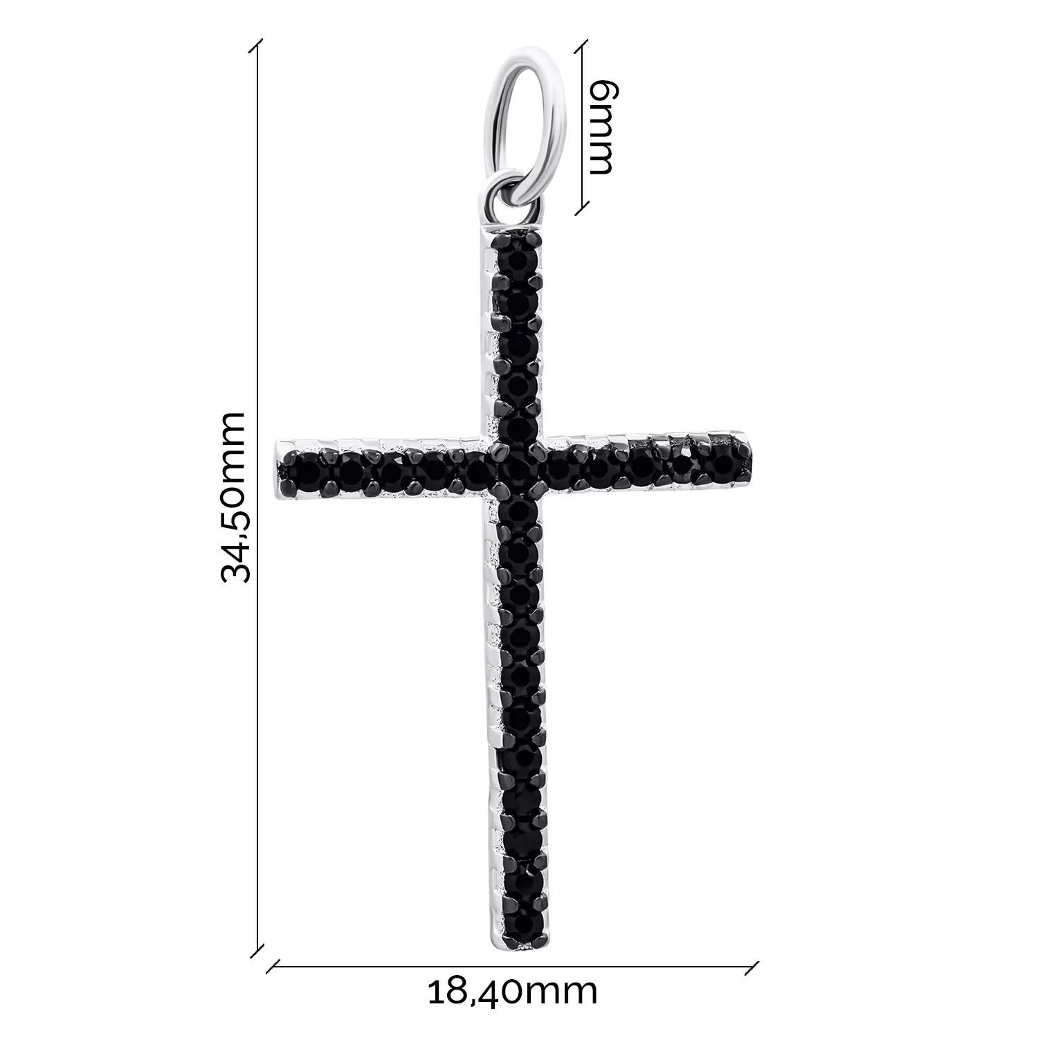 Крестик из серебра с черными фианитами декоративный - 1546802