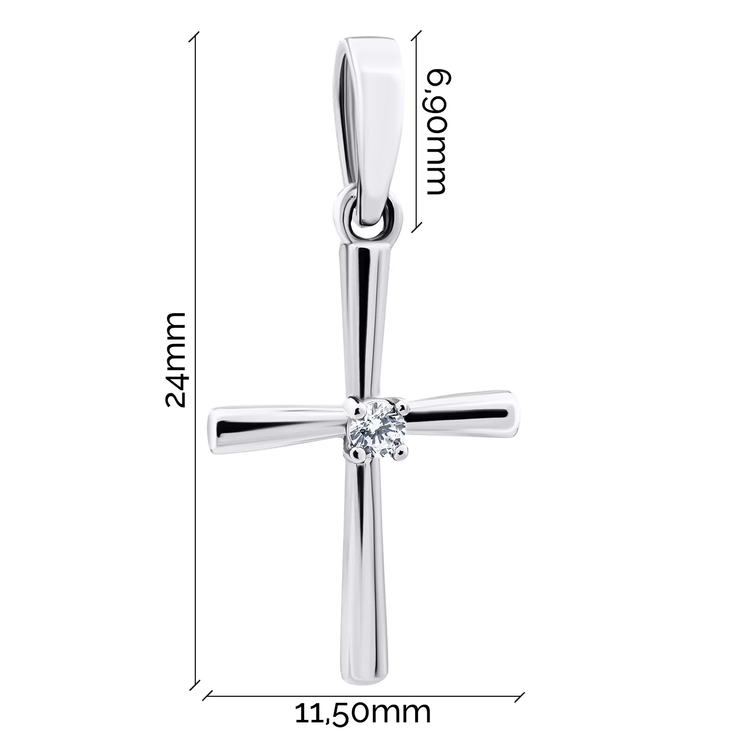 Крестик декоративный из серебра с фианитом и родированием - 1546822
