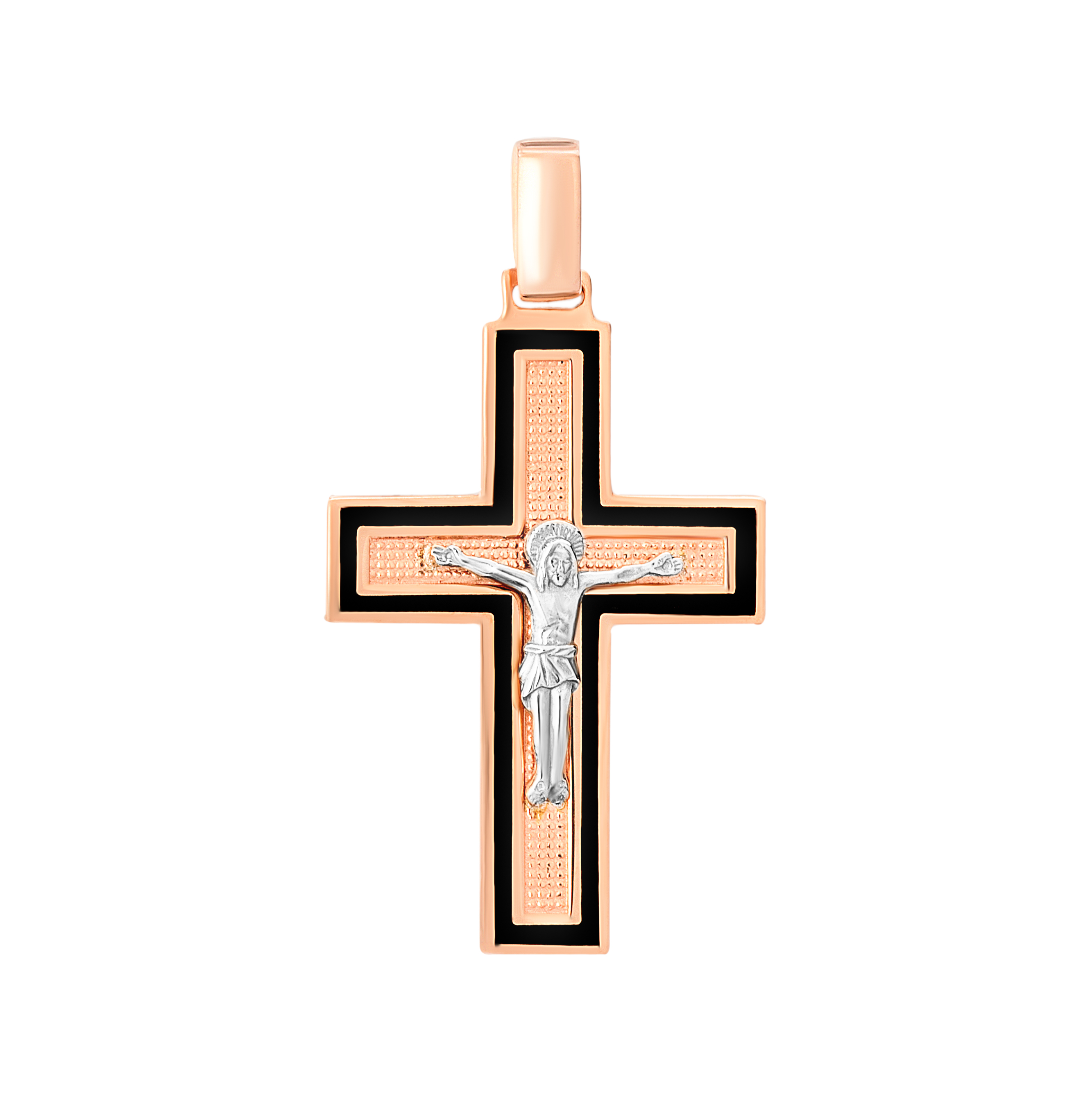 Крестик нательный из комбинированного золота с эмалью - 2115294