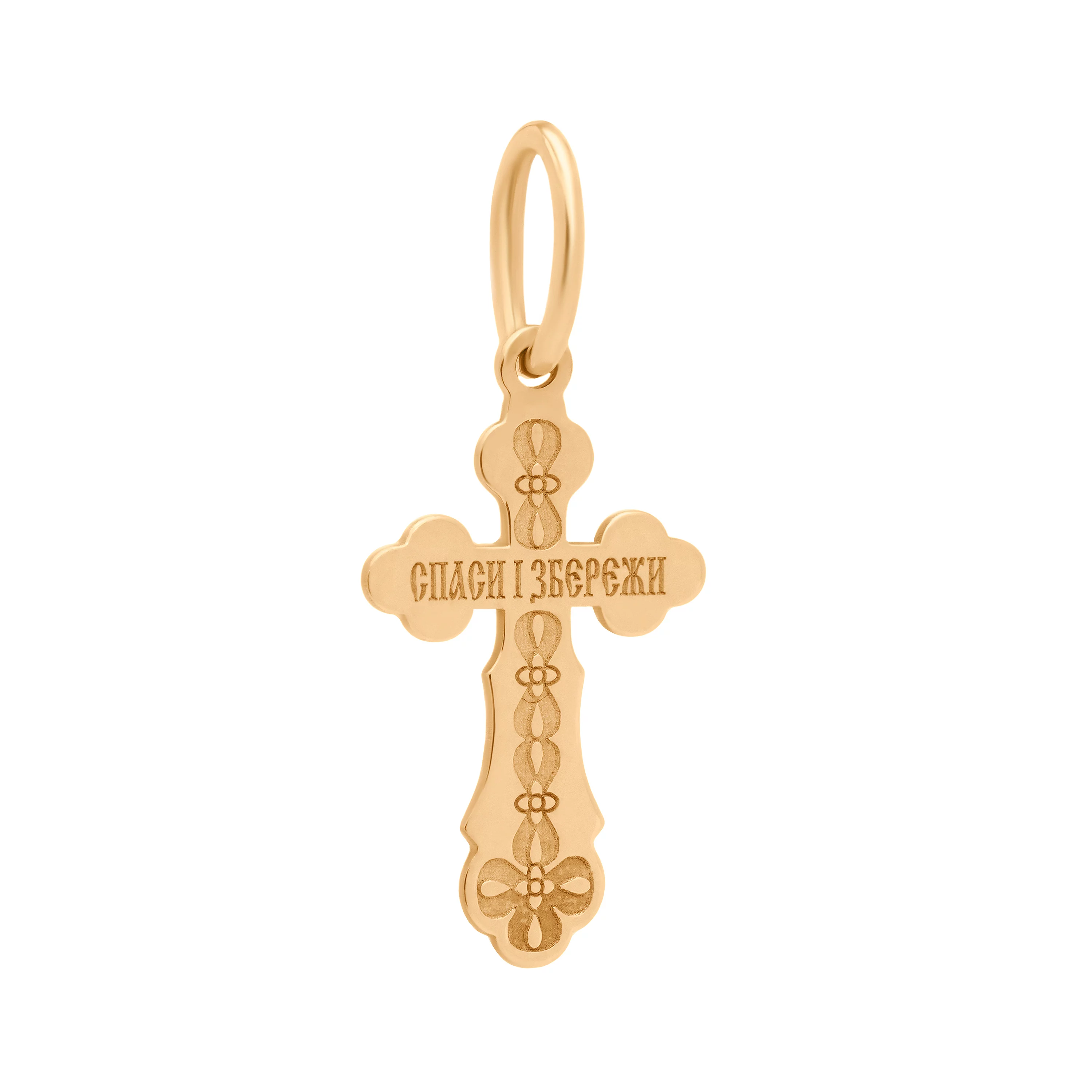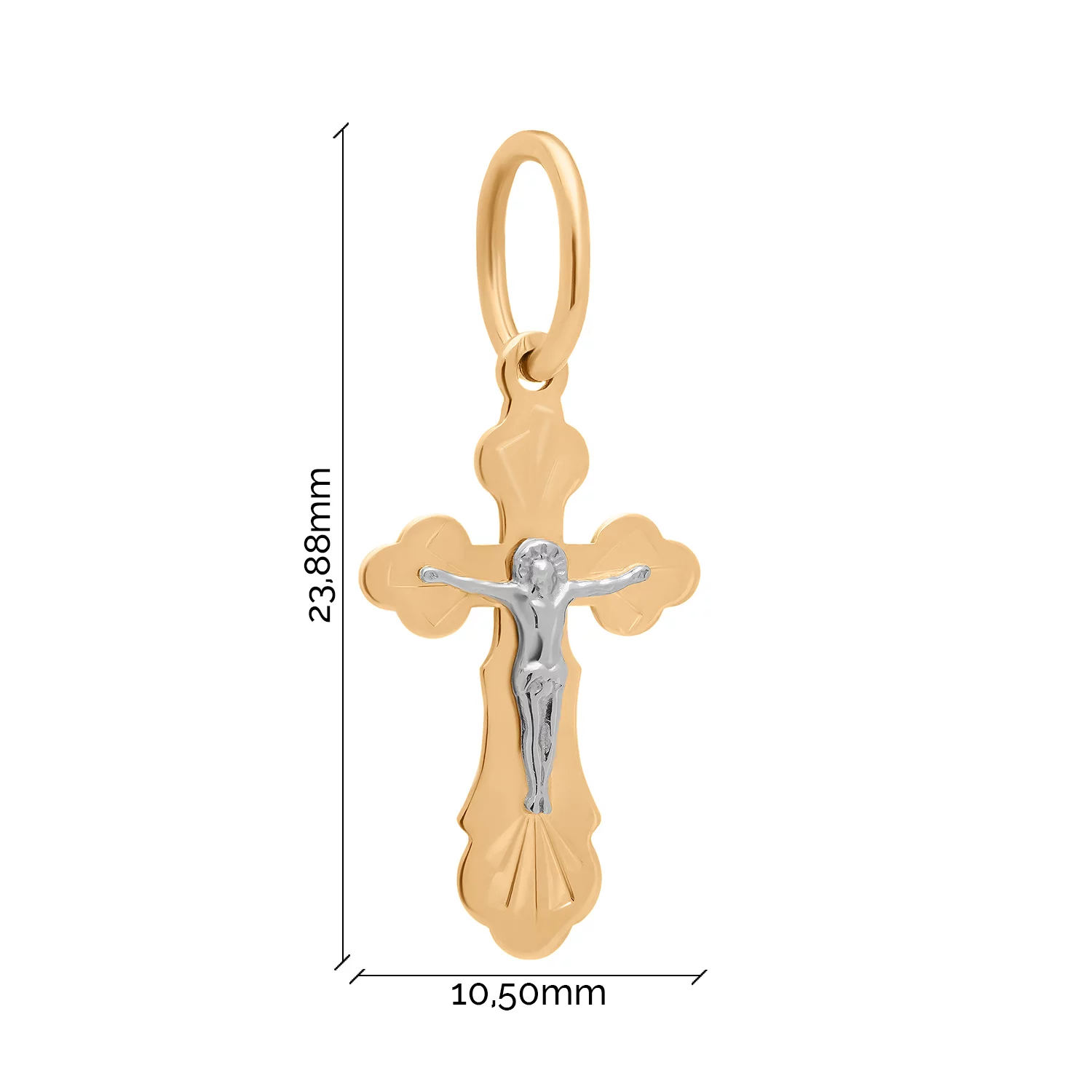 Элегантный крестик "Иисус Христос" из красного золота с чернением - 1916327