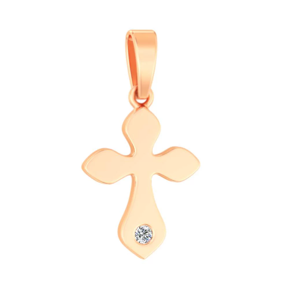 Крестик с фианитом из красного золота - 1451322