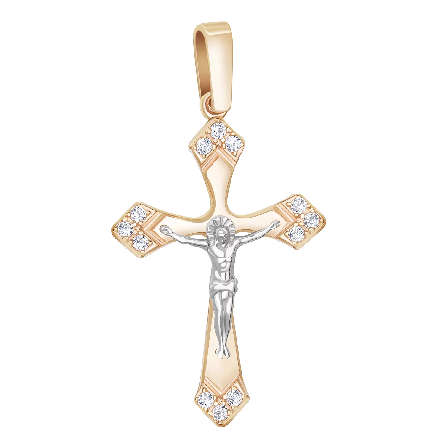 Крестик "Иисус Христос" в комбинированном золоте с эмалью и фианитами - 1951075